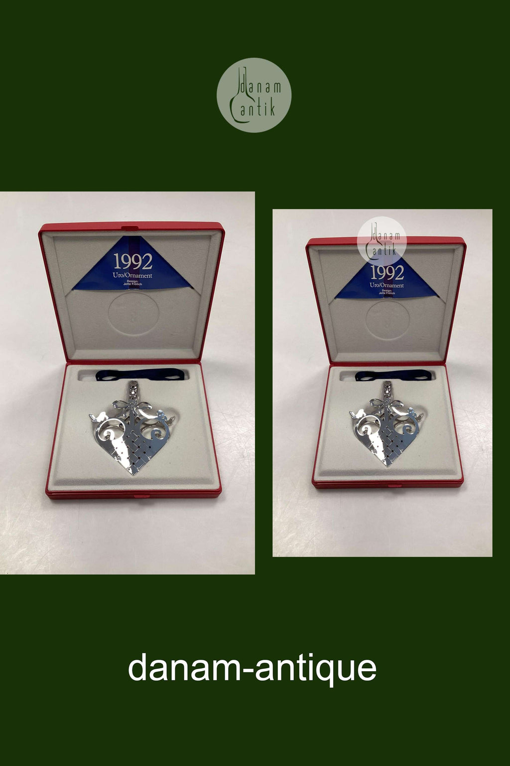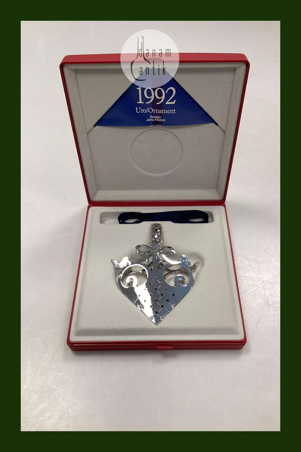 ジョージ・ジェンセンのクリスマス用骨壷 1992年製。シルバー色で状態は良好。
