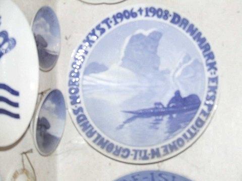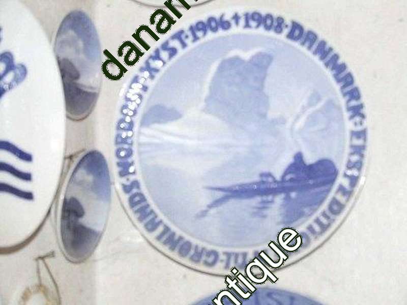 ロイヤルコペンハーゲン1908年製記念プレートRC-CM96。氷山の間をカヤックで進むエスキモーハンター。本文 DANMARK THE EXPEDITION TO GREENLAND'S NORTHEAST COAST 1906-1908 Harald moltkeによるデザイン。315部