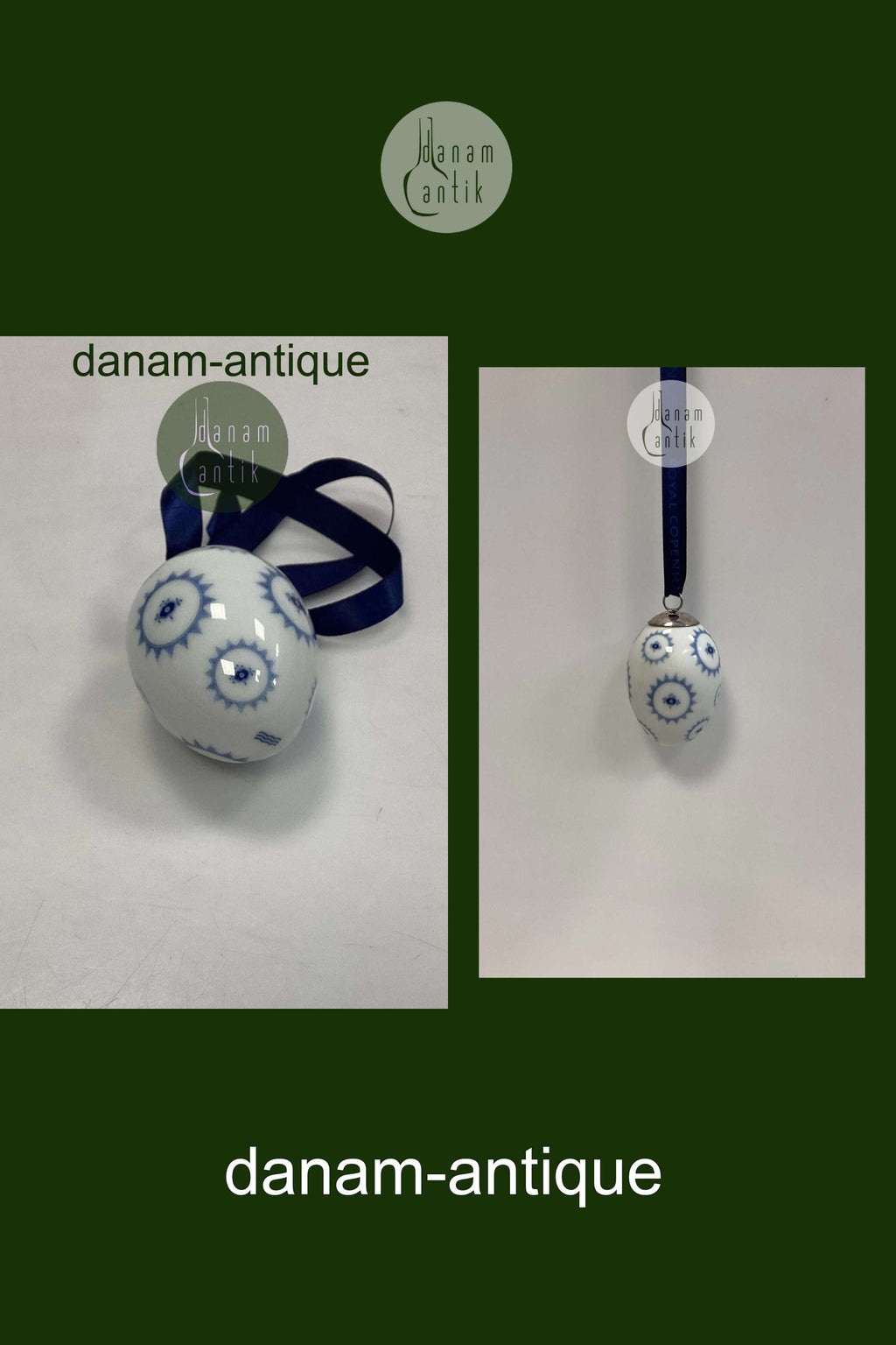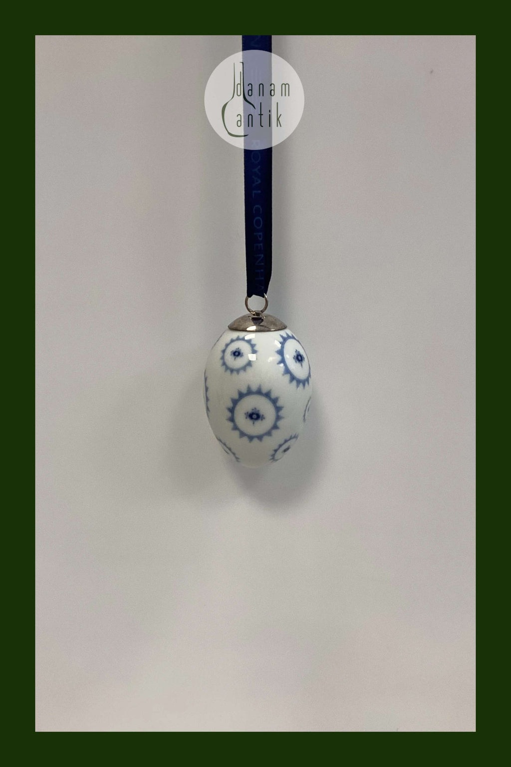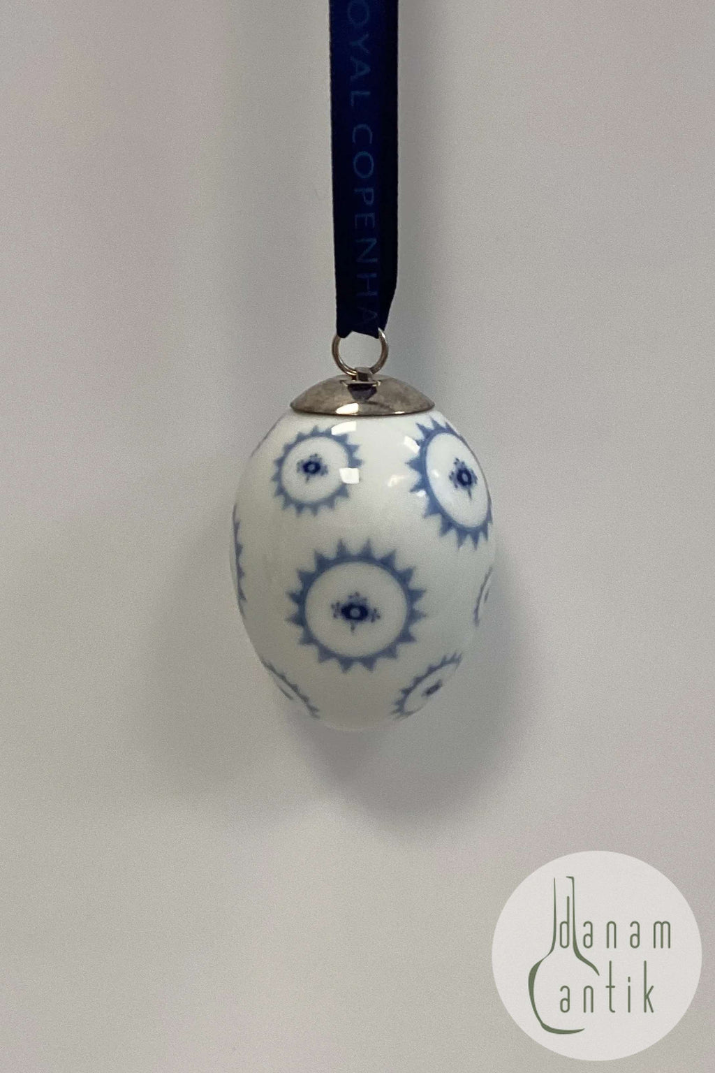 Royal Copenhagen Musselmalet Riflet Påskeæg - Cirkel 2005 med bånd og æske.