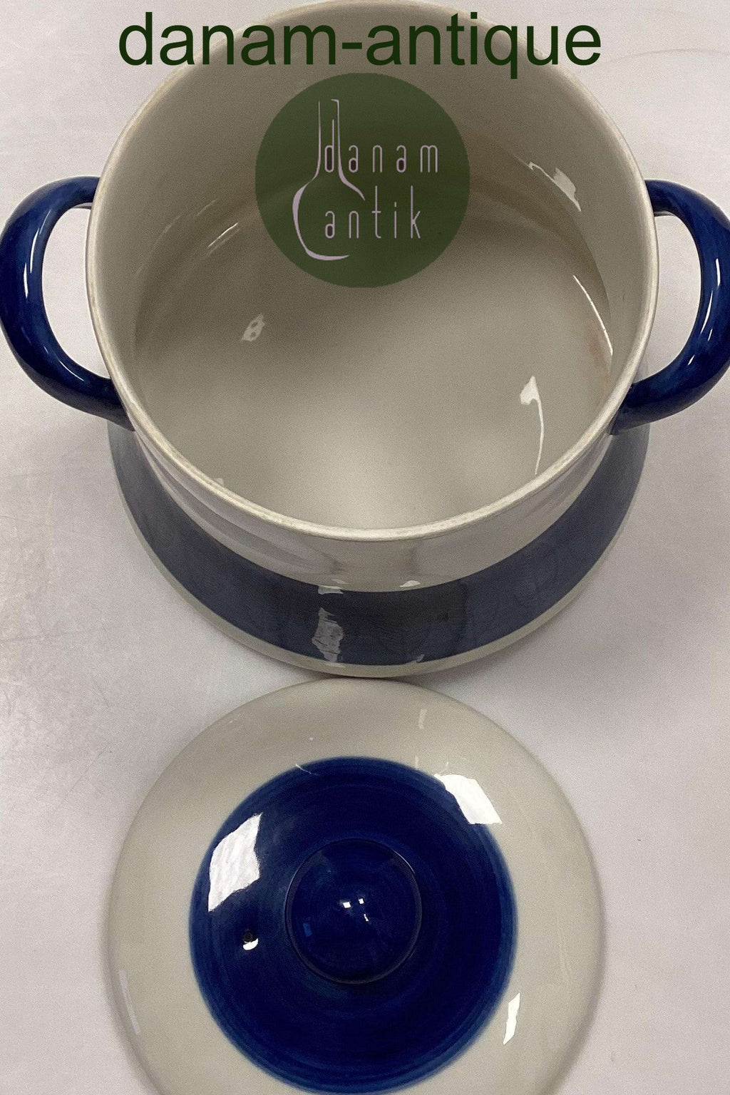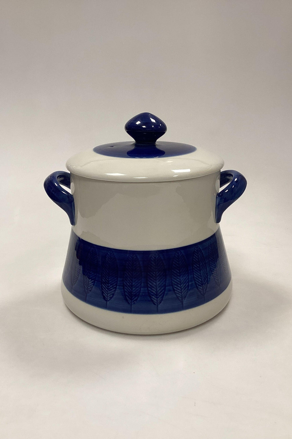 Rørstrand Blå Koka Høj Terrin med låg. Måler 20.5 cm x 20 cm i diameter / 8.08 in x 7.88 in. Indhold: 2,5 liter.