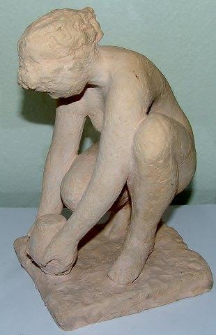 ヨハネス・ヘデガード 1941年制作の若い裸の女の子の粘土像。高さ25cm、幅19cm。完璧なコンディションに見える。台座にサイン「Johannes Hedegaard 41」、台座の下に「Johannes Hedegaard」。