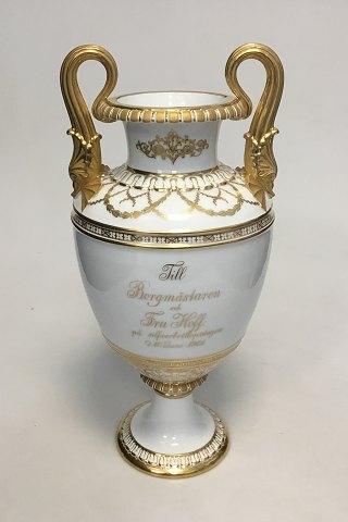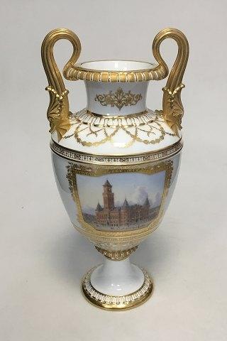 ロイヤルコペンハーゲン アンフォラ花瓶 ヘルシングボリ市庁舎の絵と銘がある。1901年6月10日、ホフ市長夫妻の銀婚式に寄せて。41cmの大きさ。