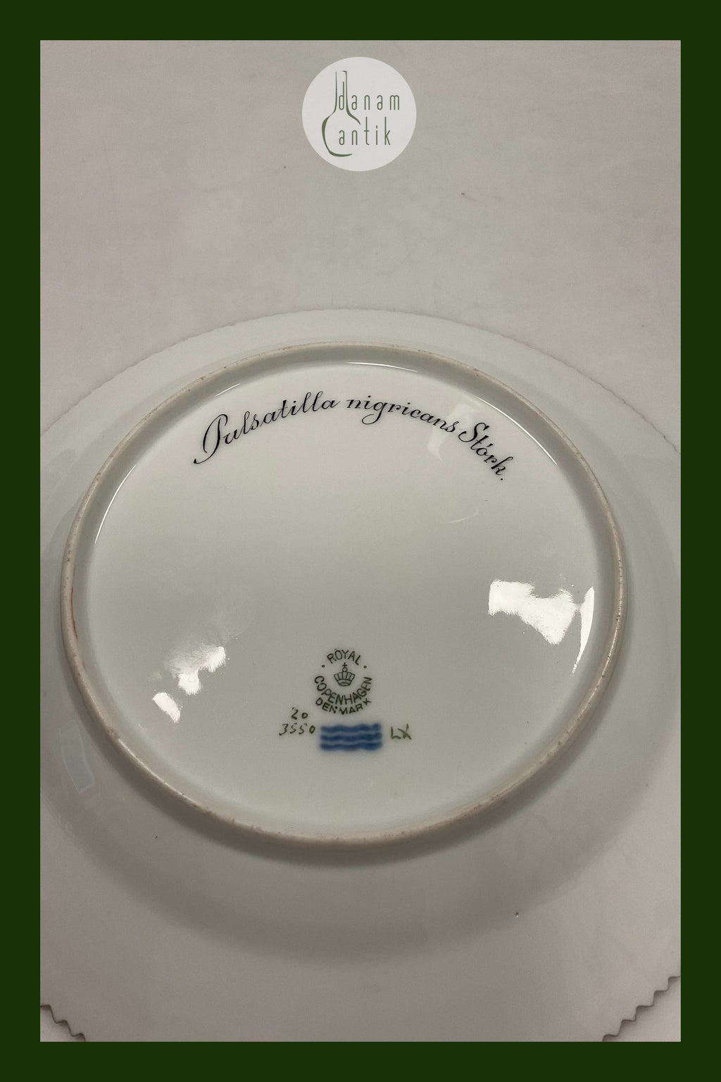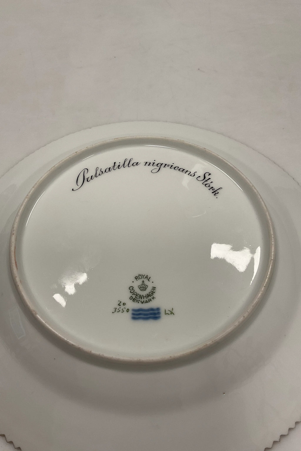Royal Copenhagen Flora Danica Frokosttallerken No 20/3550 Måler 22 cm. 1. Sortering. Latinsk navn: Pulsatilla nigricans Stork.