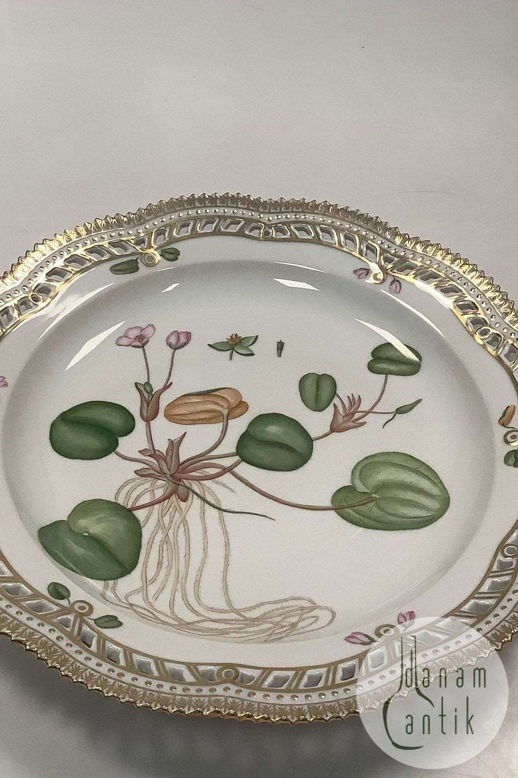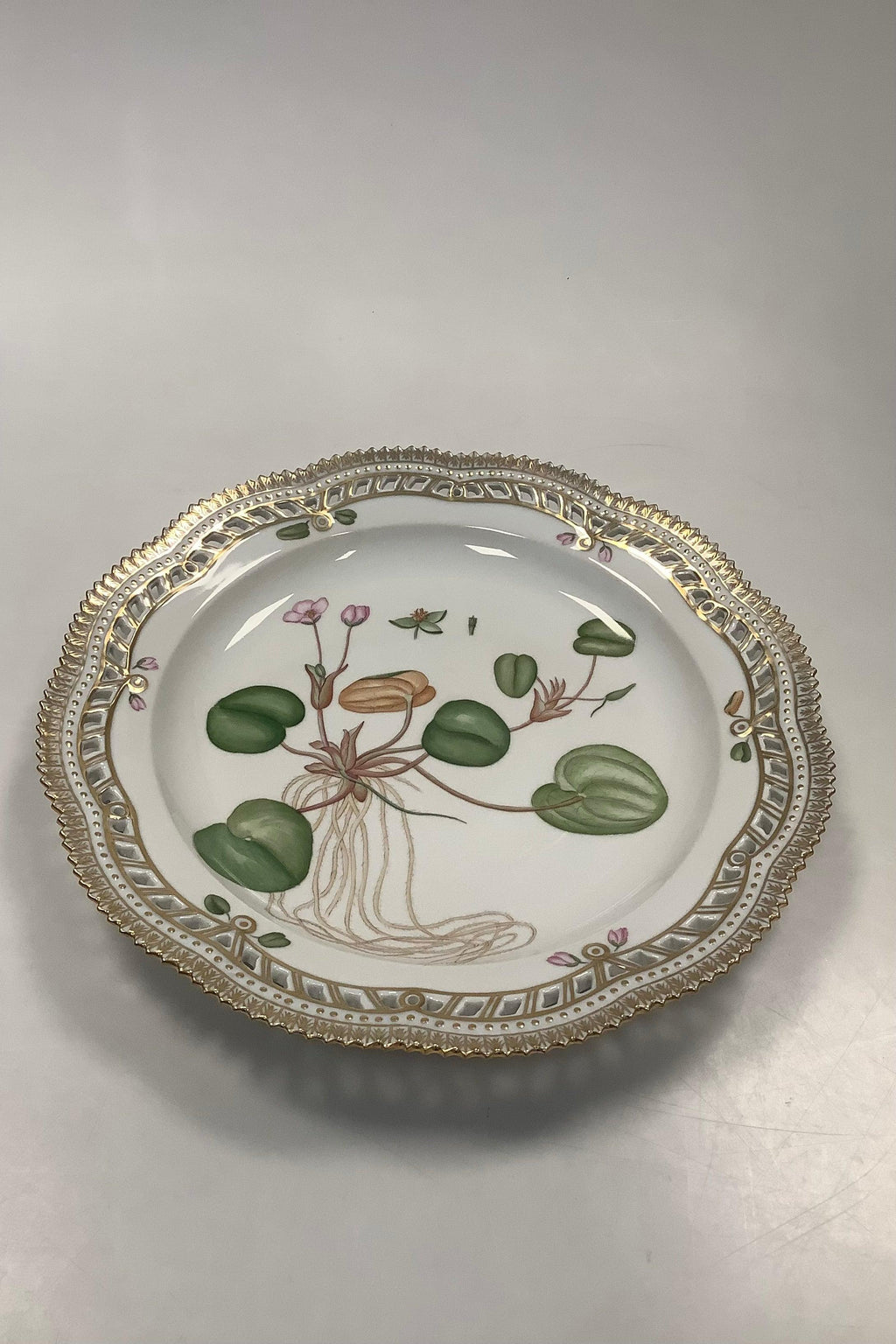 Royal Copenhagen Flora Danica Fad med gennembrudt kant No 20 / 3574 eller 381. Latinsk navn: Hydrochaus Morsus ranae L