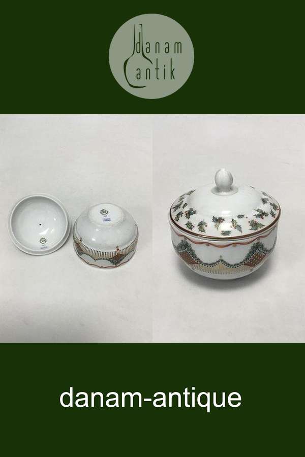 ロイヤルコペンハーゲン クリスマス・ジョイ シュガーボウル 磁器製 ヤドリギの形をした装飾付き蓋はNo.160、ボウルはNo.161。高さ: 10 cm、直径: 10 cm。