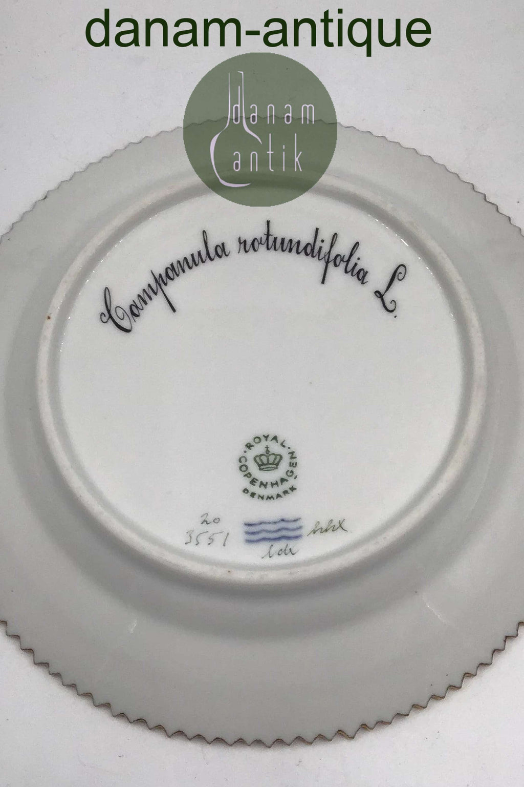 Royal Copenhagen Flora Danica Dessert Tallerken No 20/3551 1. sort. Latinsk Navn: Campanula rotundifolia L. Måler 17 cm (6.69 inch)