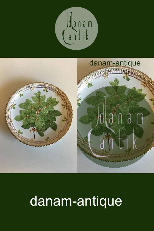 ロイヤルコペンハーゲン フローラダニカ ラウンドディッシュ No 3566 ブナの葉で装飾されています。サイン入りクライン1860年頃 24.5cmサイズ。