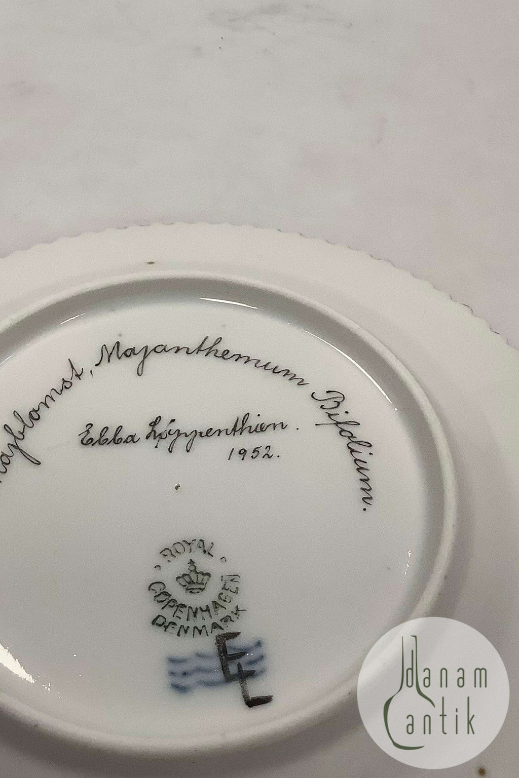 Royal Copenhagen Privatmalet Flora Danica Kagetallerken No 3552. Latinsk Navn: Majanthemum BifoliumMåler Diam 14,3 cm.(5.62 inch)
