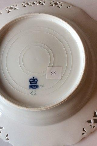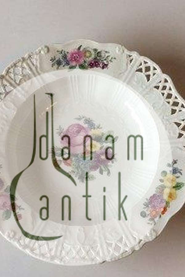 ロイヤルコペンハーゲン サクソンフラワーディーププレート(リム透かし彫り)高級モデル。24.5cmの大きさ。1900年頃、芸術監督のアーノルド・クローグが「サクソンの花」と「フローラ・ダニカ」の装飾の質を高めたいと考えたため、このセットは特に強い色彩と最高の画家たちによって制作されたのです。各作品にはユニークなサインが入っています。 他のセットに比べ、かなり高い値段で販売された。1904年から1908年にかけて生産されたセットです。
