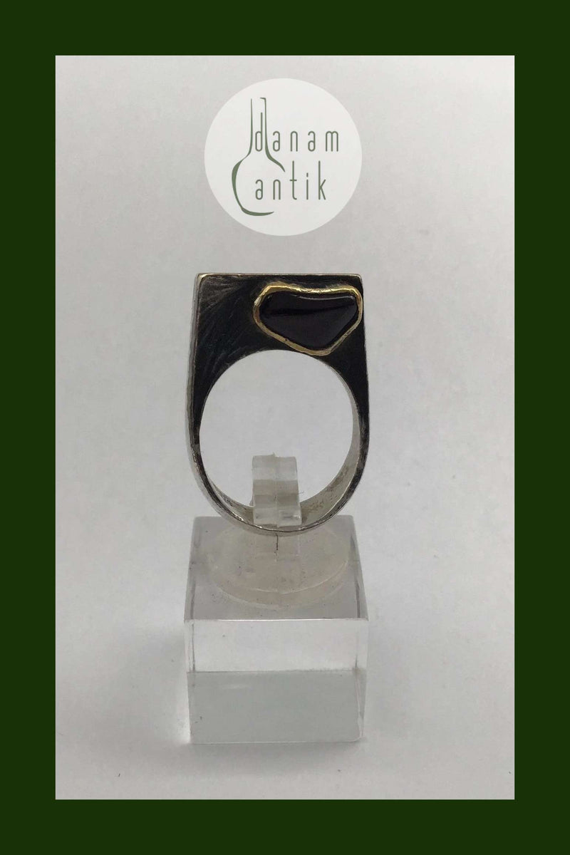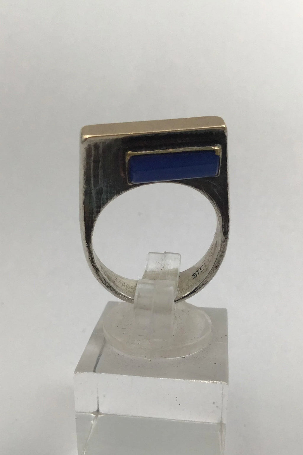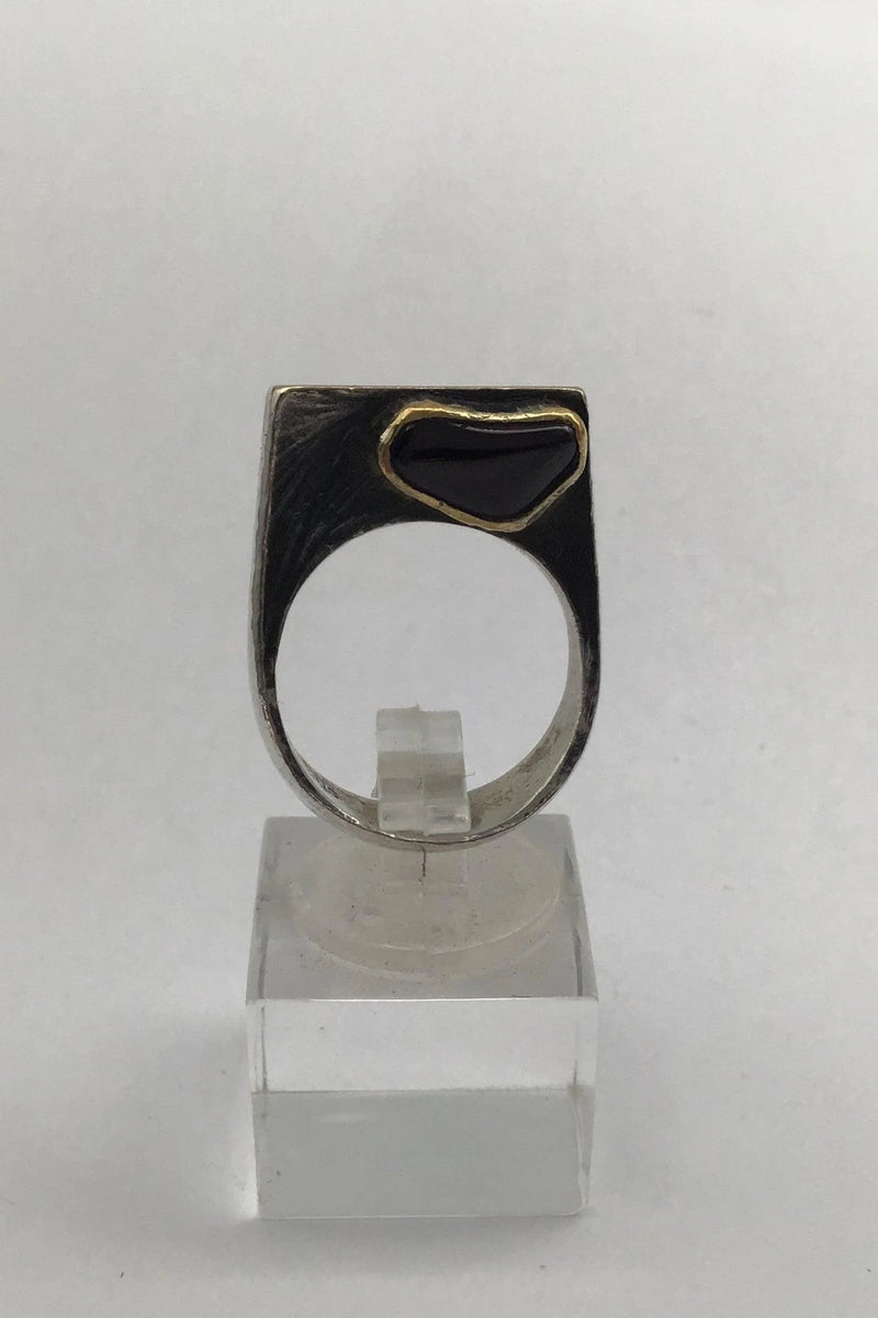(Ole W Jacobsen) Sterling Sølv / Guld Ring med ædelsten Måler Ring Str. 53 (US 6 1/2) Vægt 7.9 gr (0.28 oz) (OBS Ændret i størrelse derfor ikke mærket OWJ)
