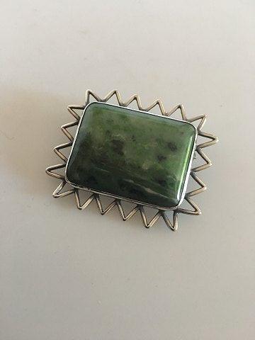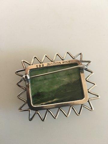 ハンセン スターリングシルバー ブローチ(グリーンシェードのストーン付きサイズは4,5×3,5cmです。重さ18g。状態は良好です。