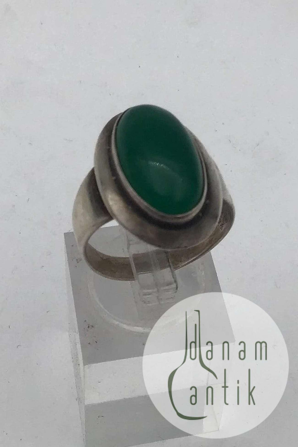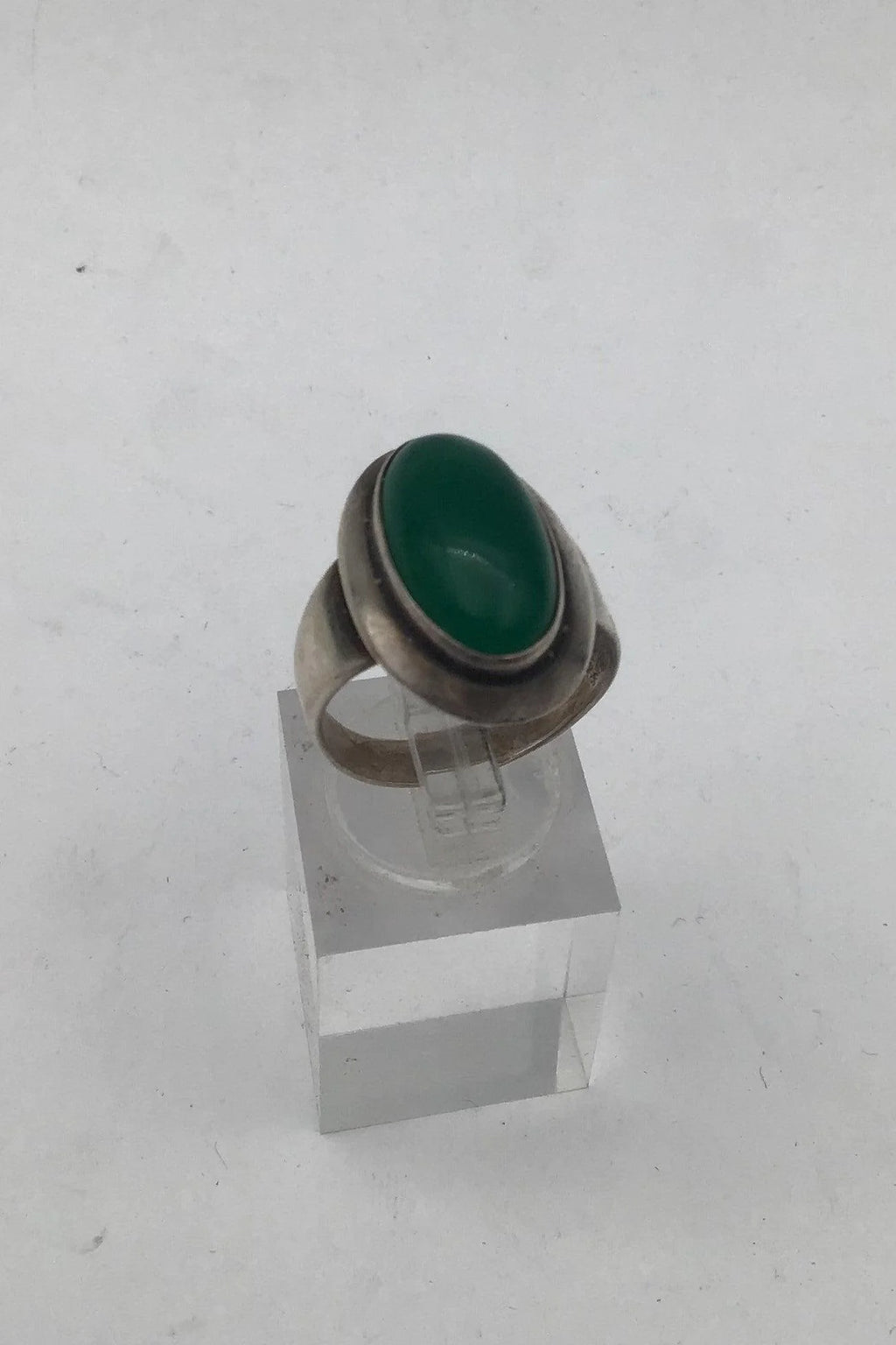 Niels Erik From Sterling Sølv Ring Grøn Agat Ring Str. 56 (US 7½) Vægt 5.6 gr (0.20 oz)