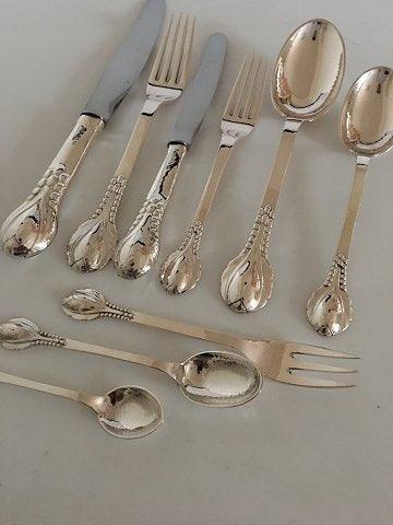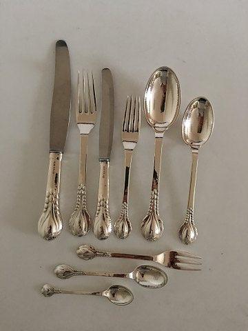エバルトニールセンNo.3シルバーカトラリーセット6人用47ピース。ディナーナイフが1本もない。セット内容:ディナーナイフ5本(25cm L) ディナーフォーク6本(20.5cm L) ディナースプーン6本(21cm L) ランチナイフ6本(21.2cm L) ランチフォーク17.5cm L デザートスプーン18cm Lケーキフォーク15cm L ティースプーン14cm L コーヒースプーン11.2cm L 全部で最高の状態です。