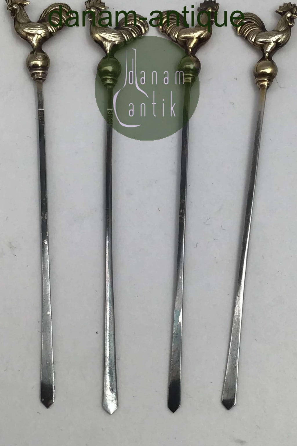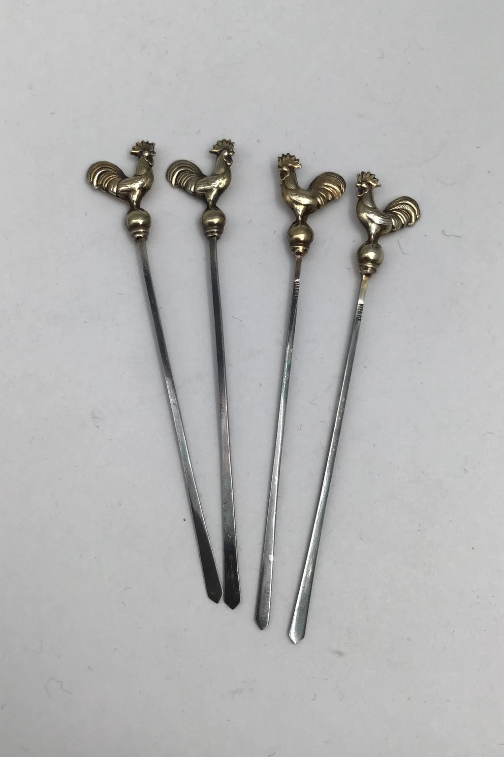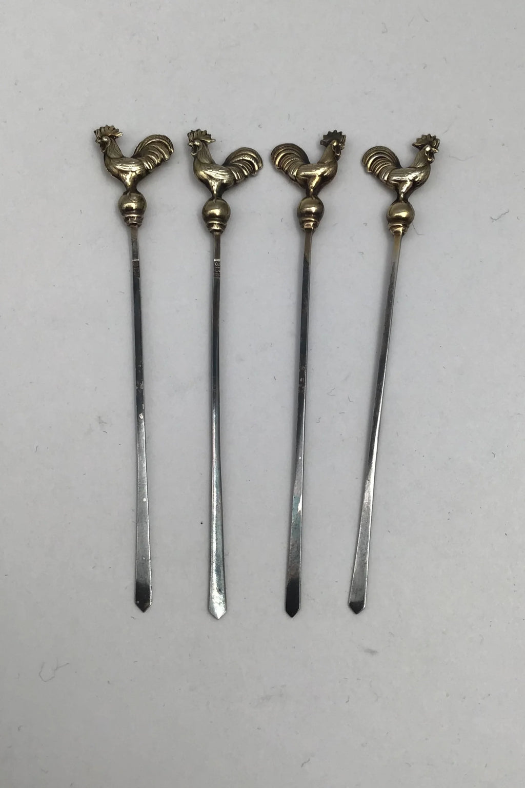 Sæt Olivenspyd / Cocktailpinde .813 Sølv Delvist Forgyldt (4) Måler L 9 cm  (3.54 inch) Samlet vægt 10.43 gr (0.37 oz)