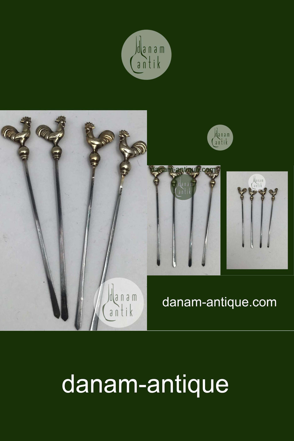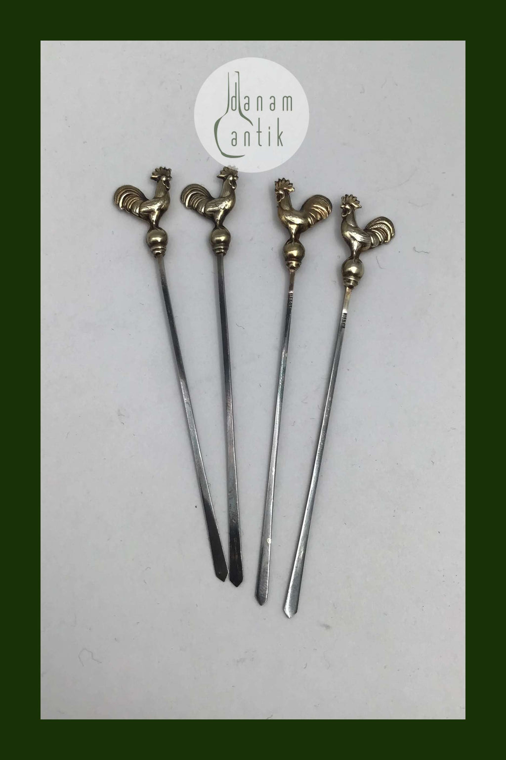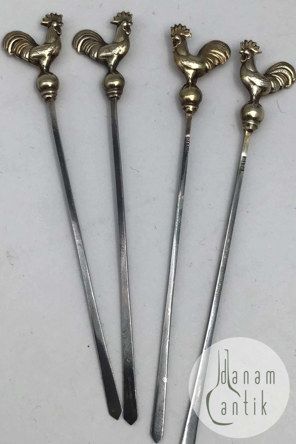 Sæt Olivenspyd / Cocktailpinde .813 Sølv Delvist Forgyldt (4) Måler L 9 cm  (3.54 inch) Samlet vægt 10.43 gr (0.37 oz)