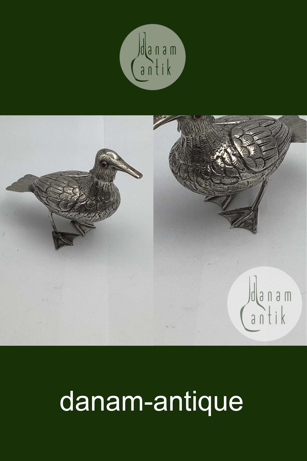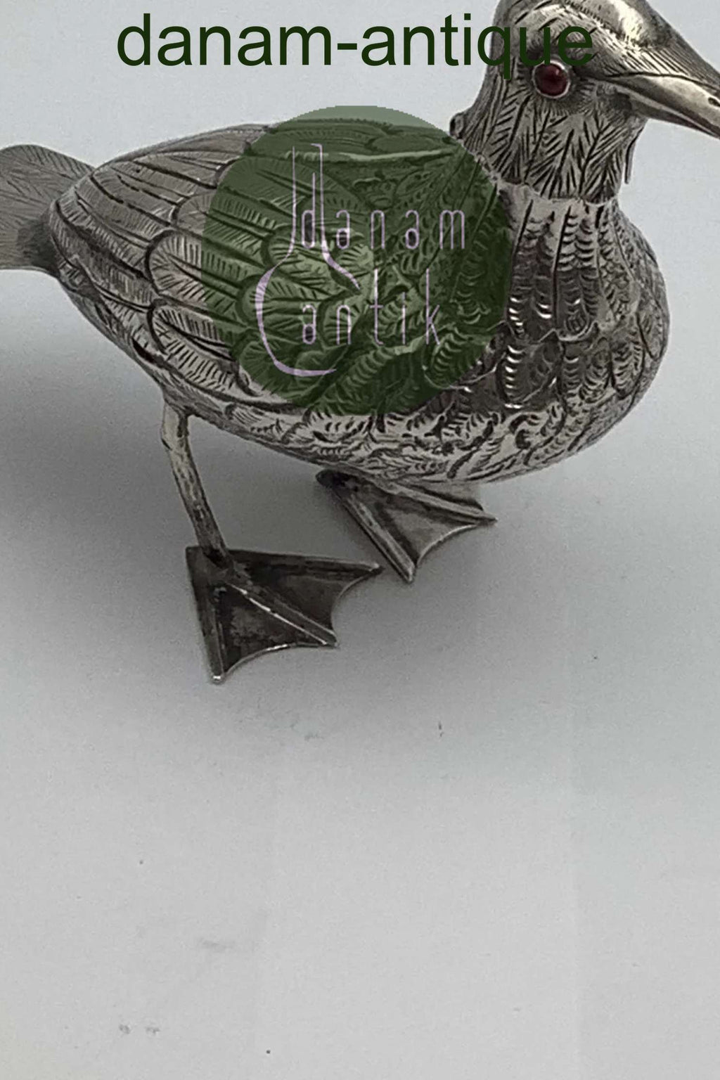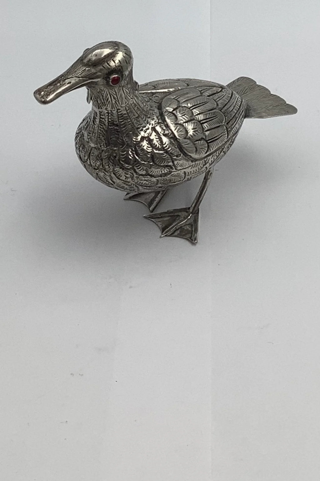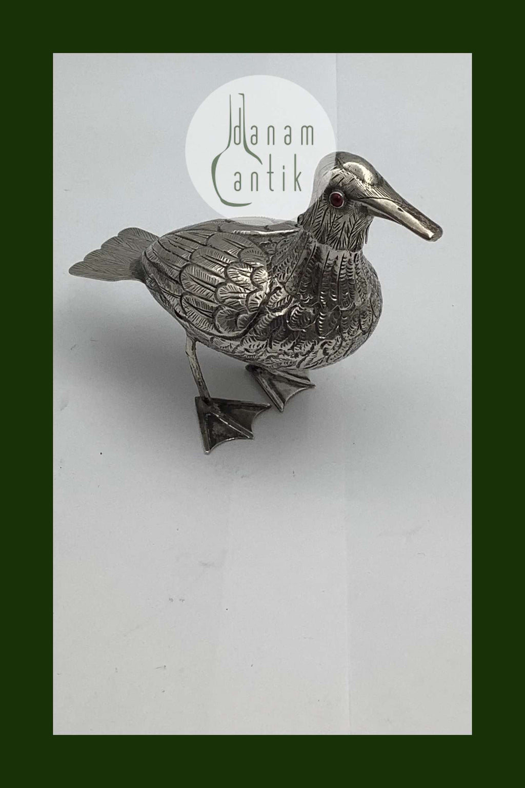 Hovedvandsæg af fugl i sølv med røde sten som øjne