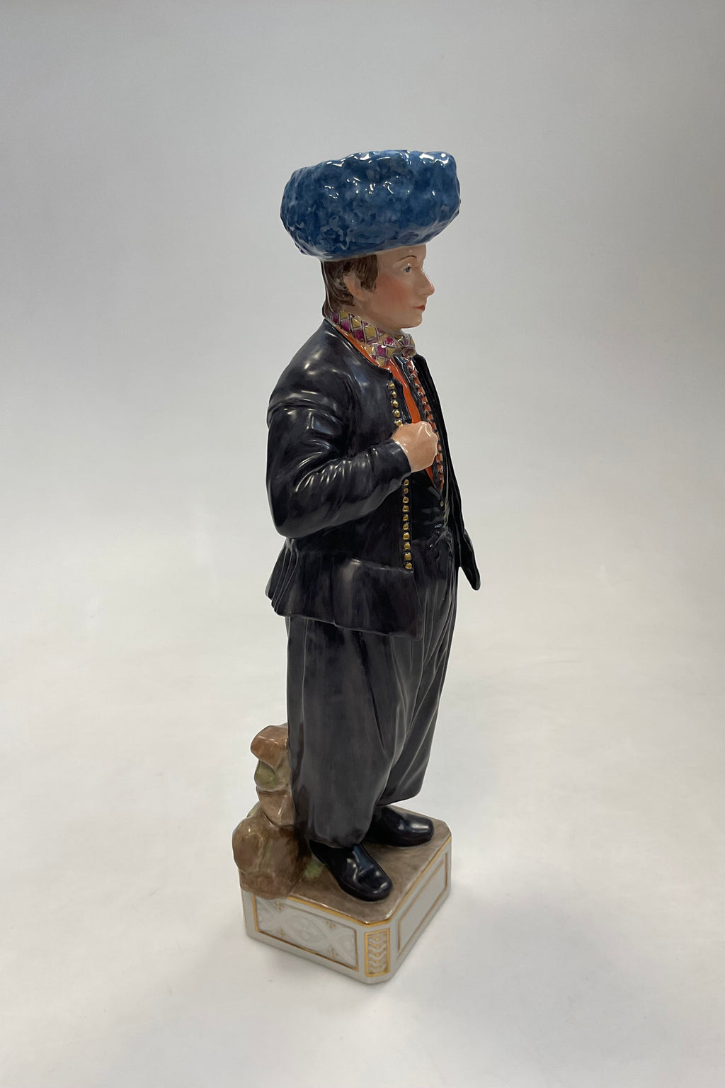 Royal Copenhagen Kongelig Porcelæn Overglasur Figur - Mand fra Amager No. 12100. Kgl. Dirch Jan Isbrandtsen, Kirkedragt, Amager 34 cm. I perfekt stand
