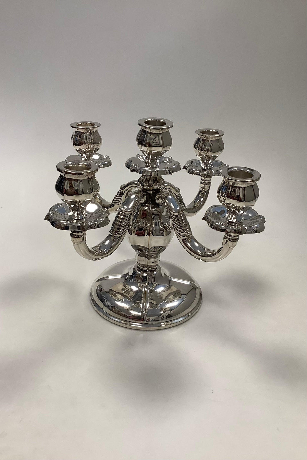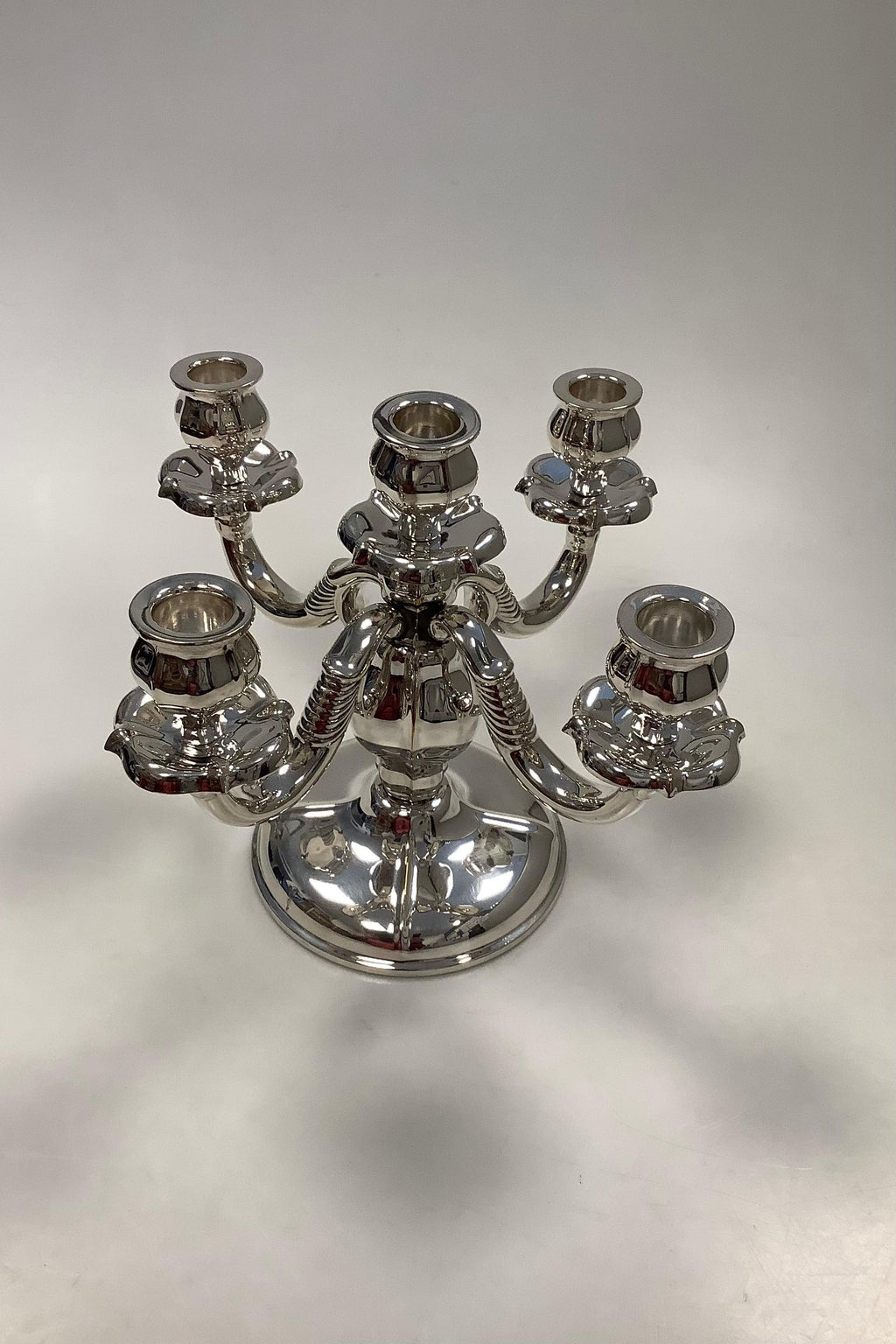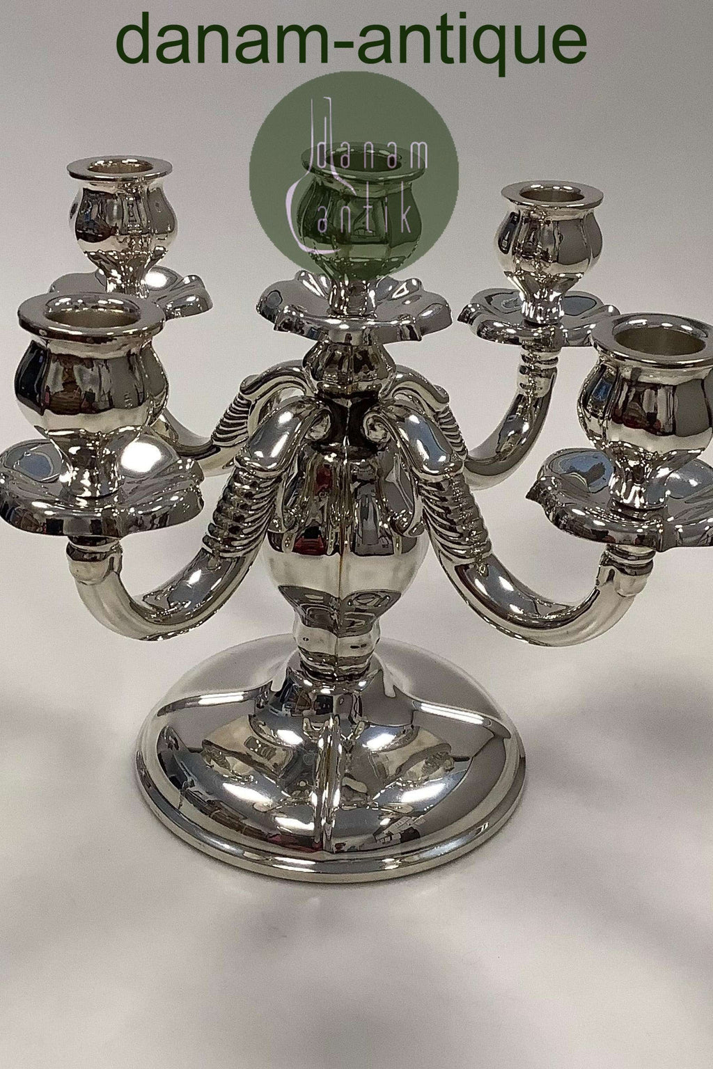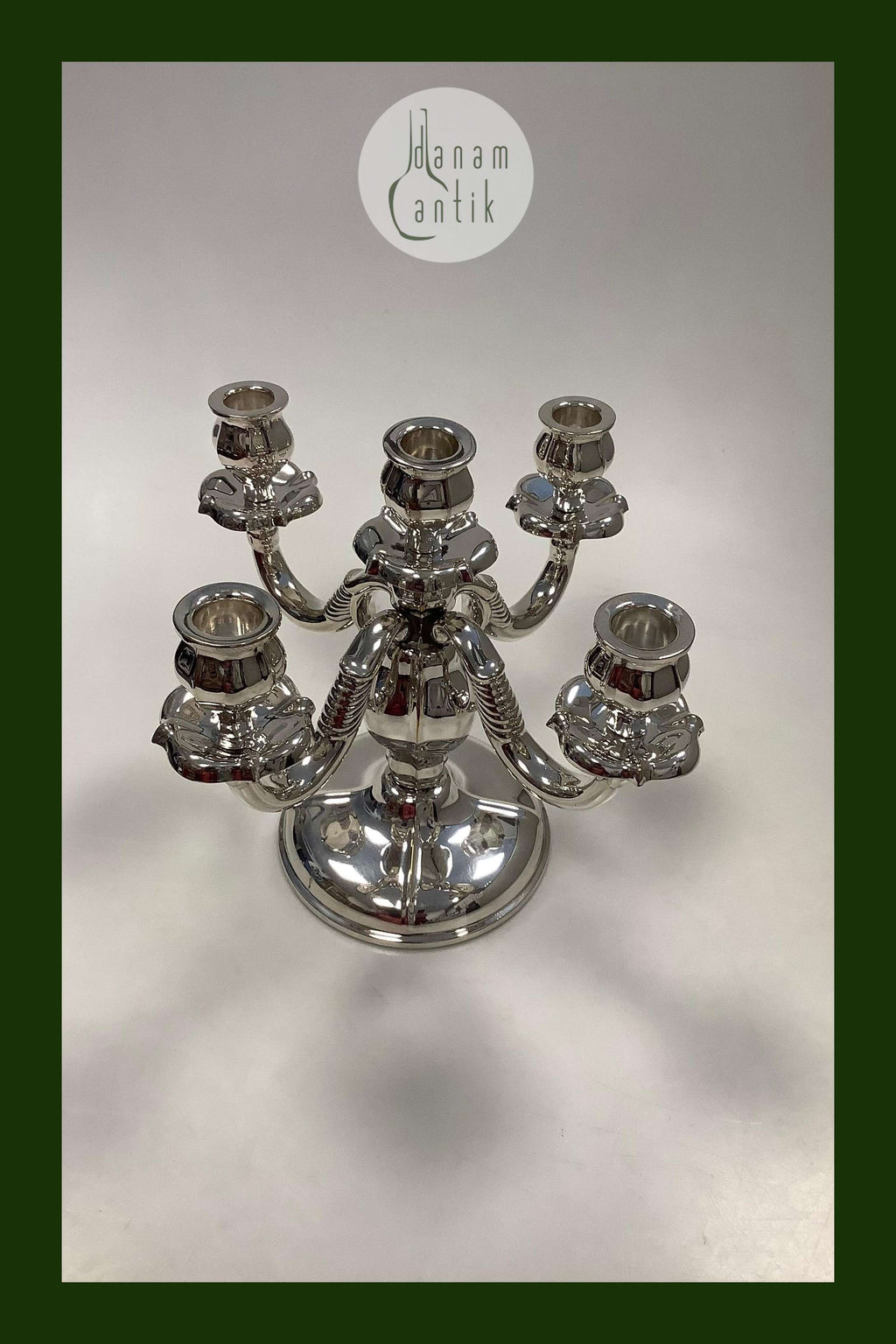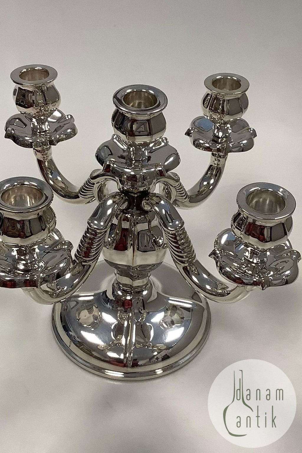 5アーム・シルバー・プレート・キャンドルスティック高さ21cm、直径26.5cm(8.27インチ x 10.43インチ)。