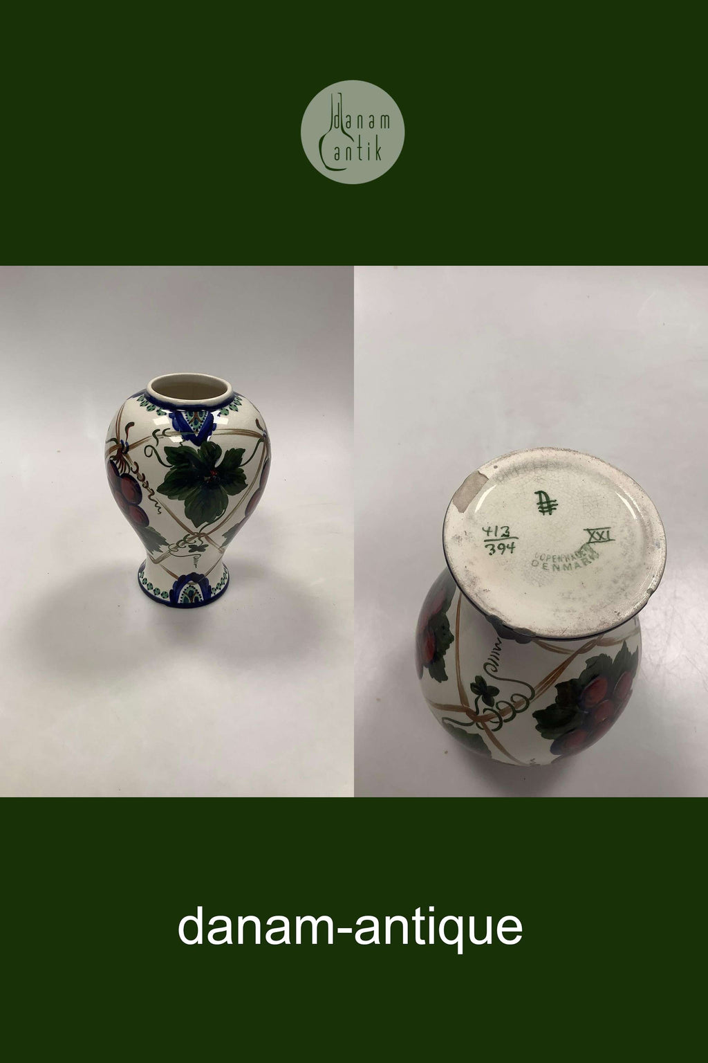 Aluminia Royal Copenhagen Vase with Flowers Decoration No.413/394