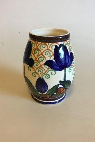 アルミニアは1863年にコペンハーゲンに設立されたデンマークの陶磁器工場である。その後、同じくデンマークの有名な陶磁器会社であるロイヤル・コペンハーゲンの傘下となった。ここでは、アルミニアについていくつかのポイントを紹介しよう: 1.**創業:1863年、アウグスト・シオット(1834-1863)により、デンマークのコペンハーゲンに小さな陶器工房として設立された。 2.**土器は粘土で作られた陶器の一種で、光沢を出すために小さな釉薬で覆われている。その後、磁器も扱うようになった。 3.**ヨハネス・ヘデゴー(Johannes Hedegaard)やニルス・トルソン(Nils Thorsson)といったアーティストをはじめ、デンマークで有名なアーティストやデザイナーとコラボレーションを行った。これらの芸術家たちはユニークで個性的なデザインを生み出し、アルミニアのスタイルを定義するようになった。 4.**ロイヤルコペンハーゲンとの合併:** 1882年、アルミニアは同じくデンマークの有名な磁器会社であるロイヤルコペンハーゲンに買収された。合併後も "アルミニア・ロイヤルコペンハーゲン "の名で生産が続けられた。 5.**ファイアンスと磁器: **アルミニアはファイアンスと磁器の生産で知られていた。磁器には様々な食器や装飾品があり、人気が高く、コレクターの垂涎の的となった。 6.**ニルス・トーション:**著名なデザイナーであるニルス・トーションは、アルミナの最も象徴的な作品の多くを手がけた。彼のデザインは、独創的でモダンな表現で知られるようになった。 独立したブランドとしてのアルミニアはもはや存在しないが、その遺産は、この名のもとに生み出された製品や、ロイヤル・コペンハーゲンの名のもとに陶器や磁器を使った継続的な作品に生き続けている。