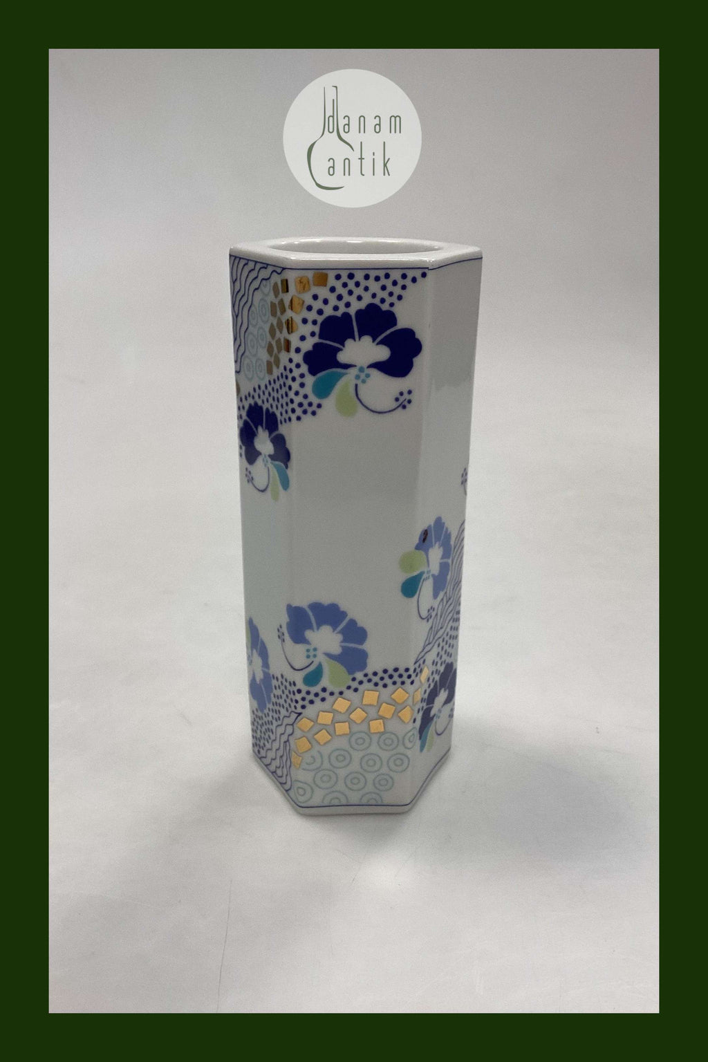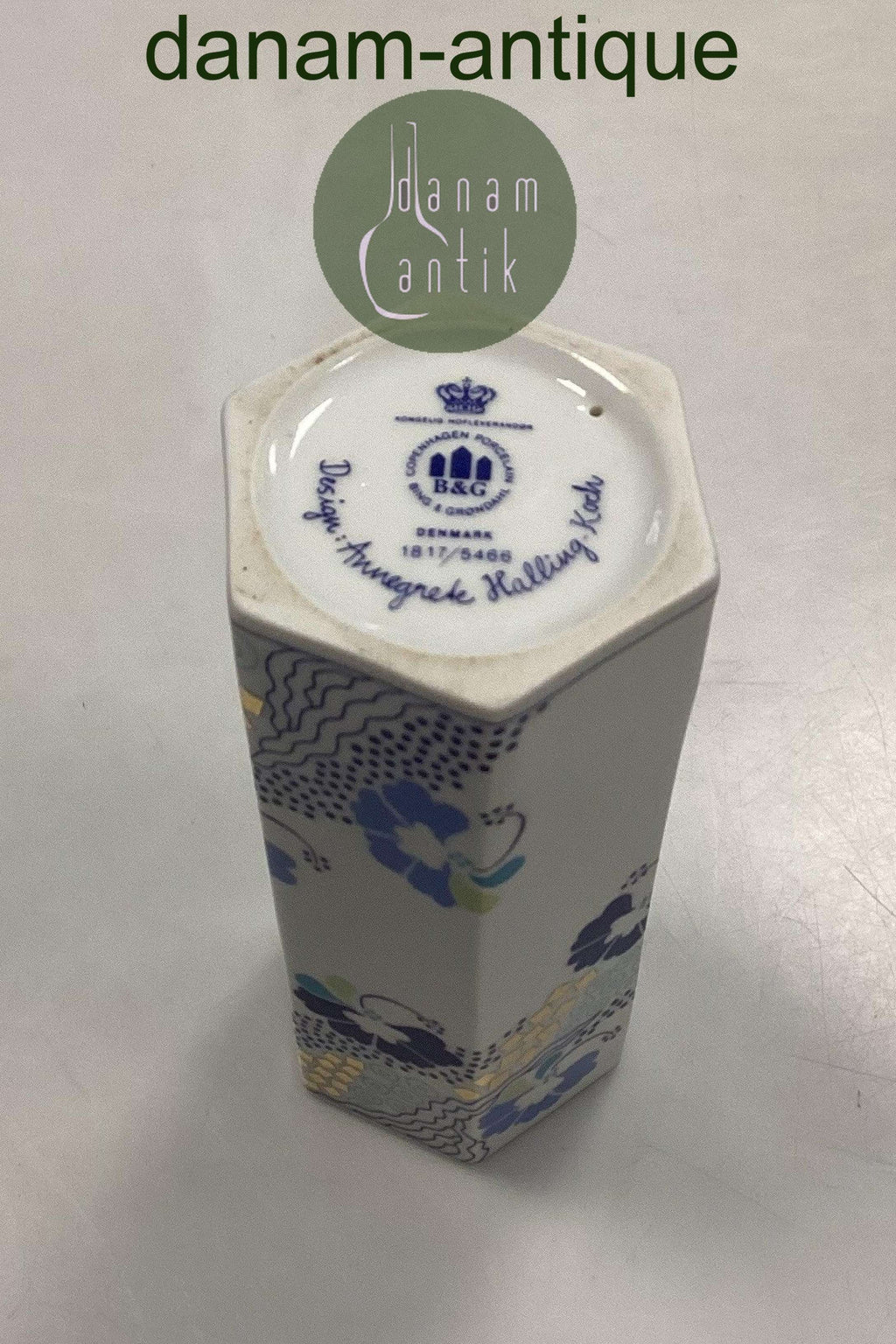 Bing og Grøndahl Fyrfad Lysestage af Annegrete Halling-Koch No. 1817/5466. Blå nuancer med guld.