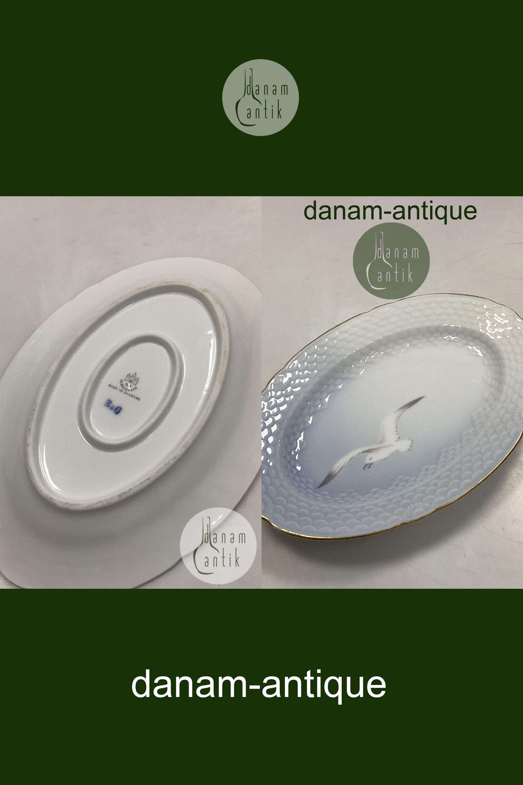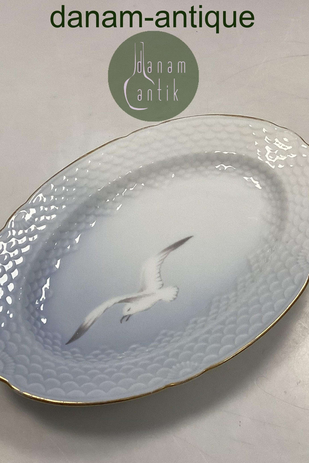 ビング&グロンダール カモメとゴールドのオーバルディッシュ No.17。x 19 cm / 7.48 インチ。