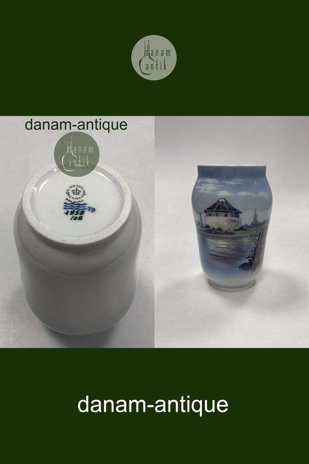 Royal Copenhagen Art Nouveau Vase - Krudttårnet i Frederikshavn No. 2858/108. Måler 17 cm / 6,69 in. 2. Sortering i fin stand.