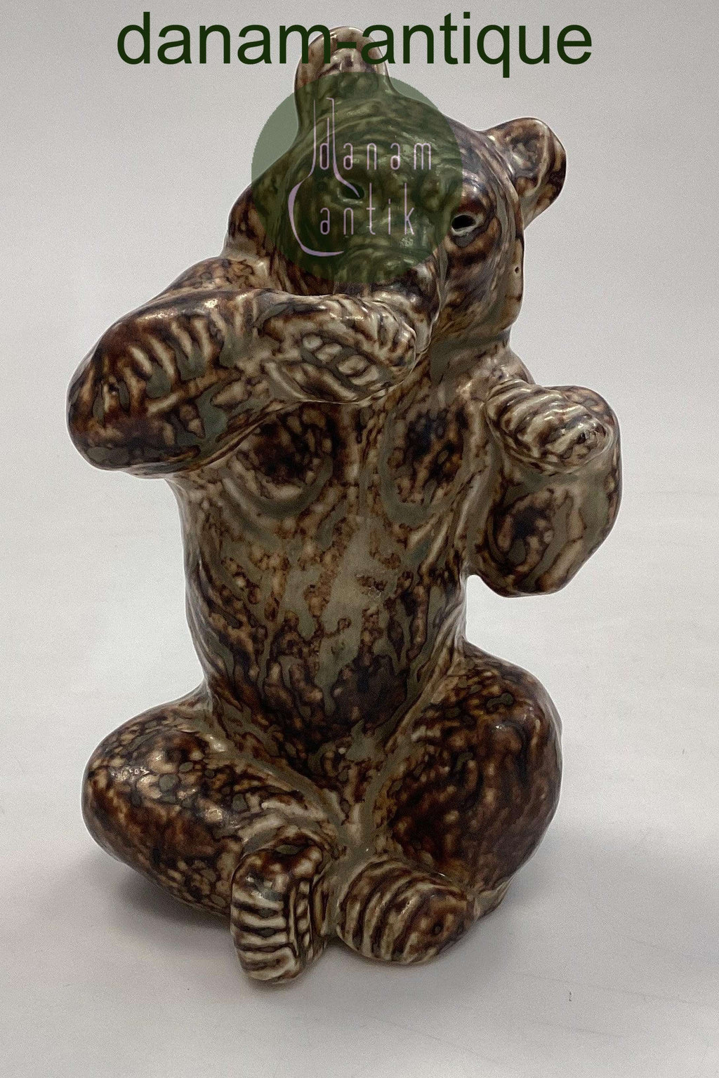 Royal Copenhagen Stentøjsfigur af Siddende Bjørn No. 21675. Designet af Knud Kyhn.
