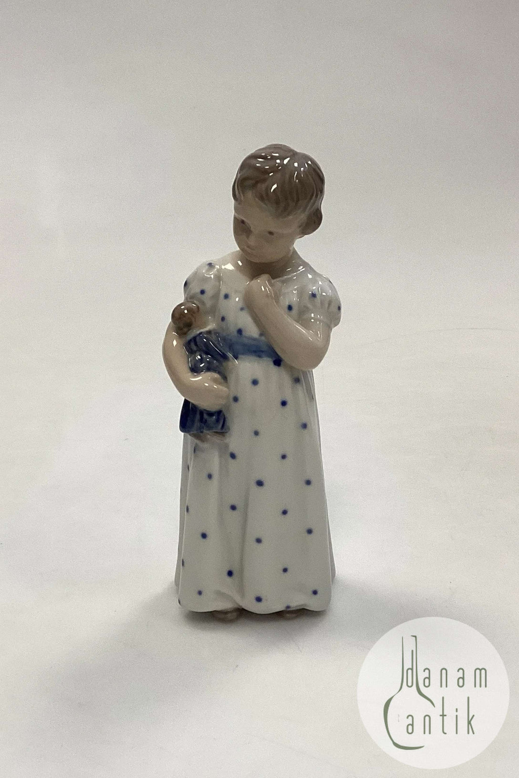 Royal Copenhagen Figur No. 3539 Pige med Dukke. Designet af Ada Bonfils.