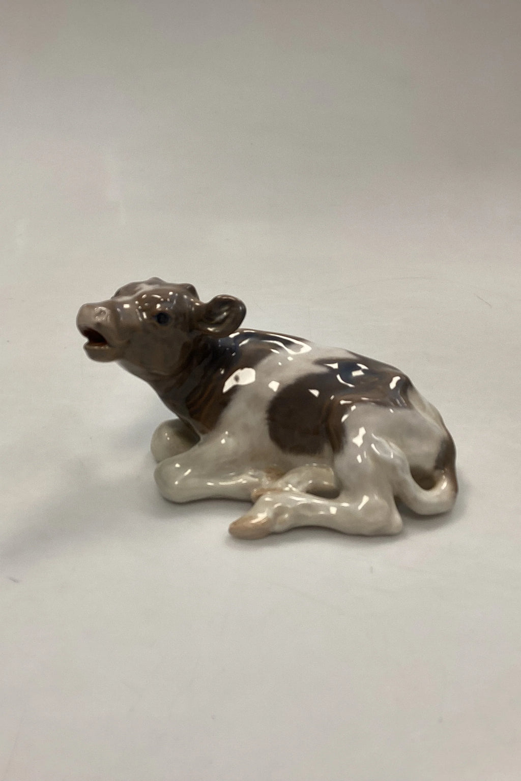 Royal Copenhagen Figur Kalv No. 1072. Designet af Knud Kyhn i 1909. Gråbrune farver. 1. Sortering. Måler 10 x 17 cm / 3,93 x 6,69 in.