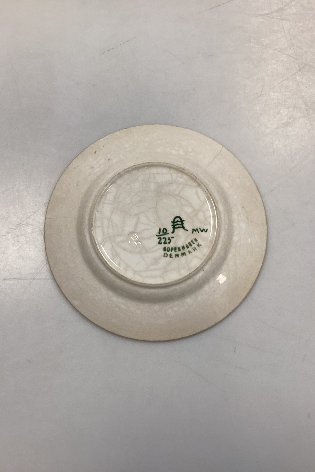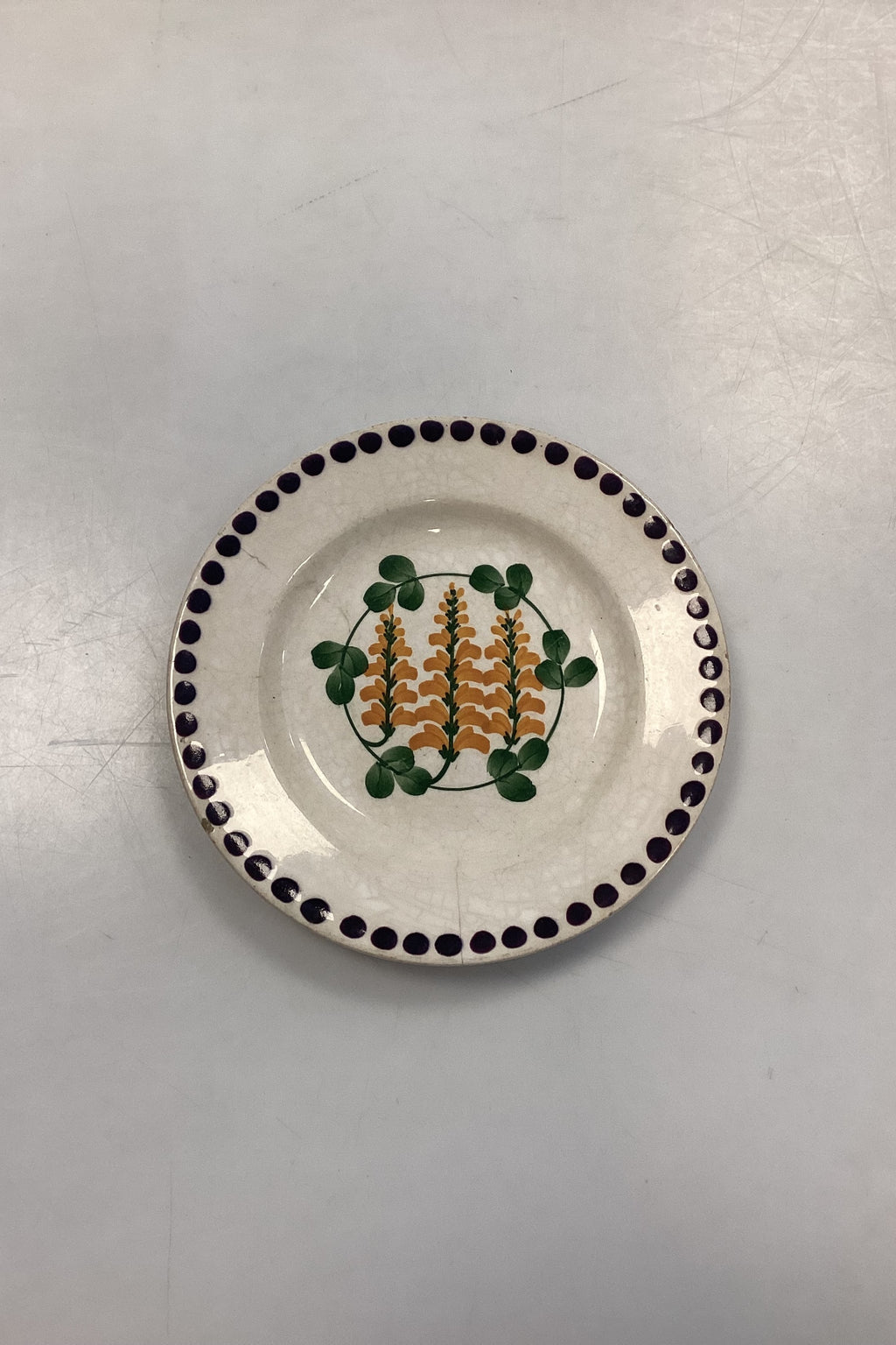 Aluminia Guldregn (Laburnum) Sidetallerken No. 10/225. Måler 16 cm / 6,30 in. Krakeleringer, hårrevner og små afslag.Designet af Harald Slott-Møller 1902