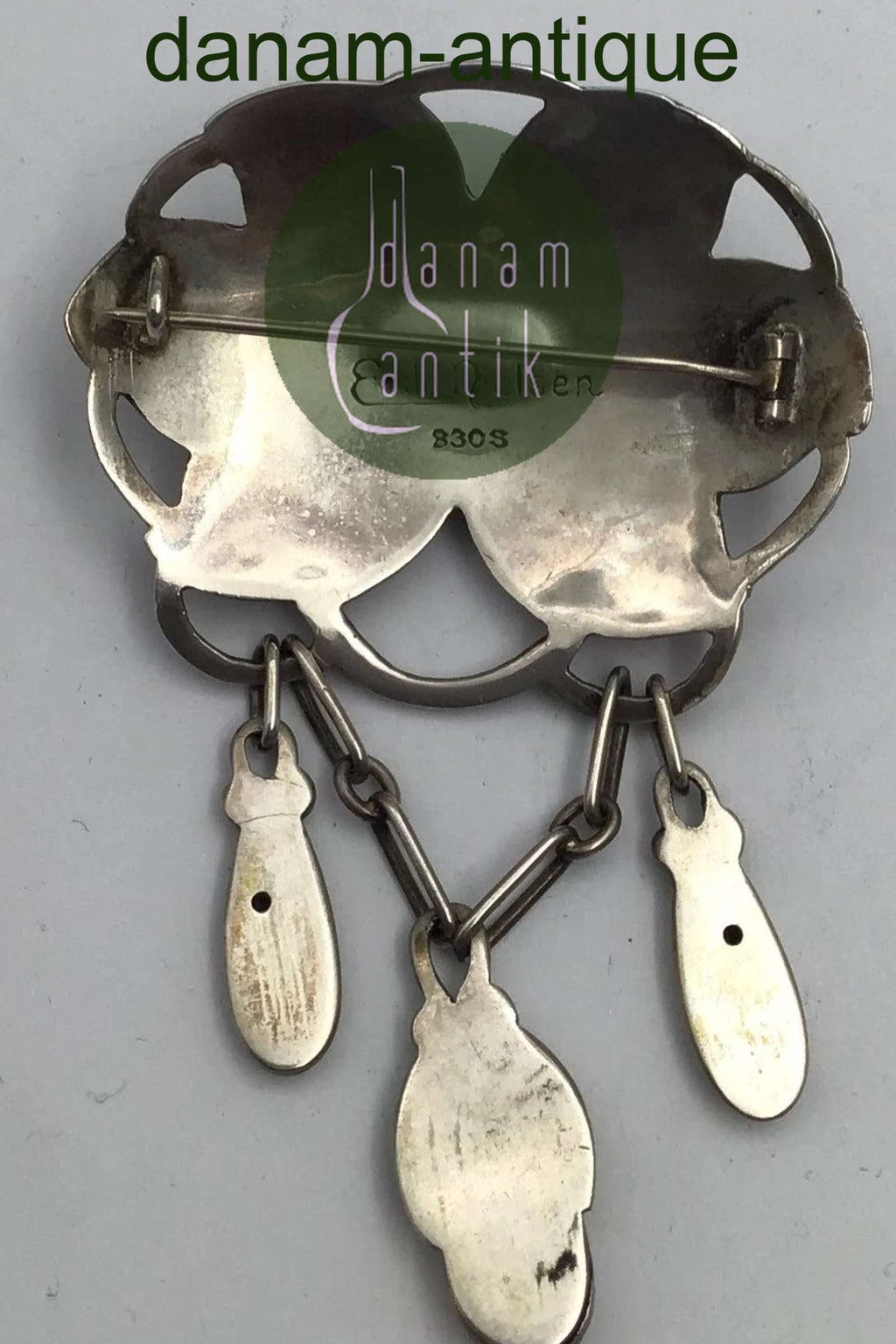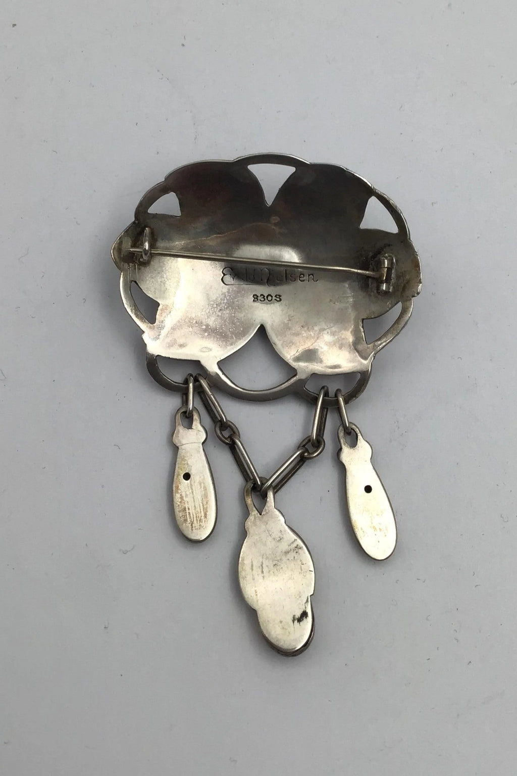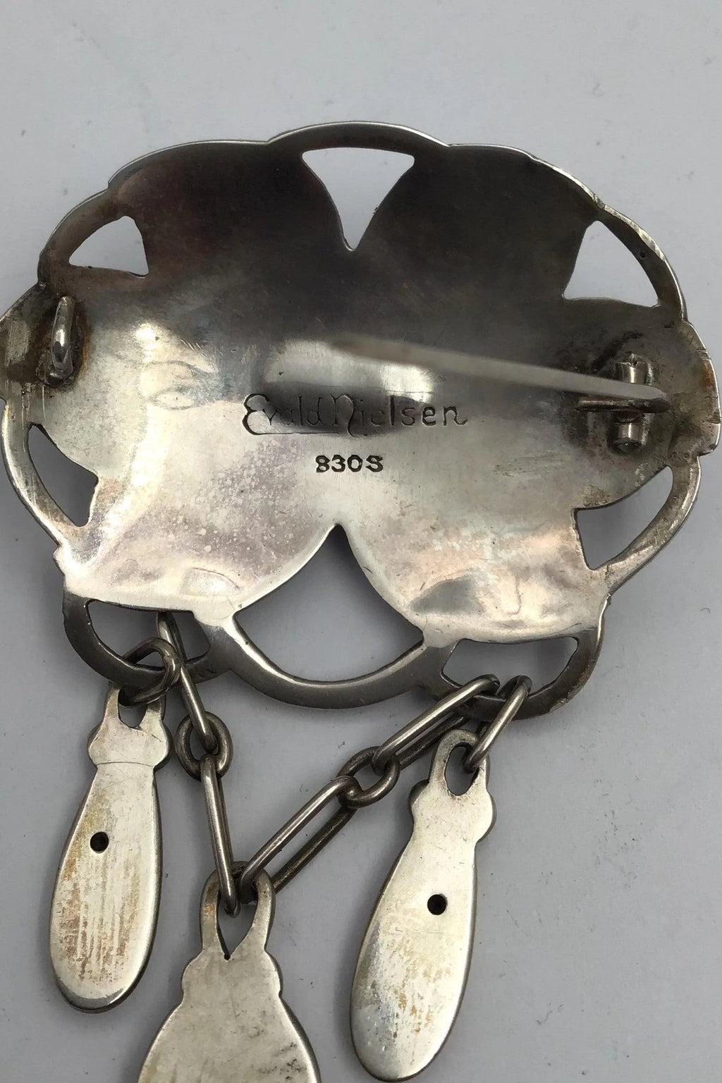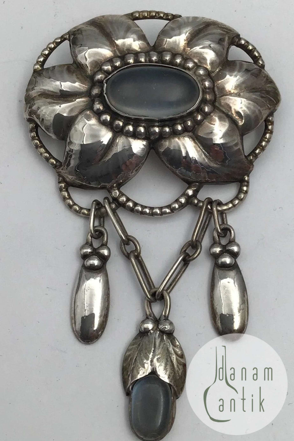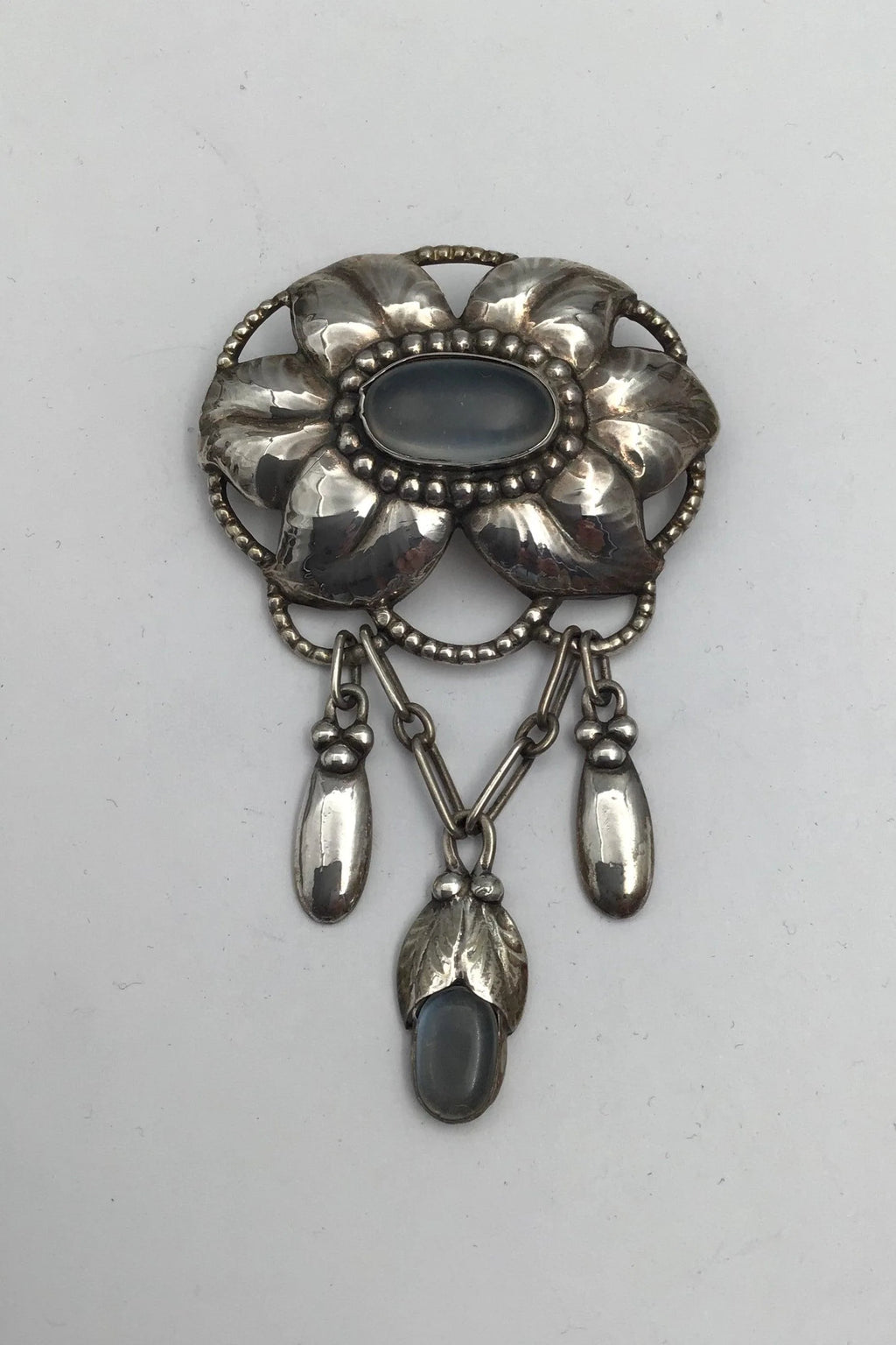 Evald Nielsen Art Nouveau Sølv Broche (Månesten) Måler 7.9 cm x 4.9 cm (3.11 inch x 1.92 inch) Vægt 21.8 gr(0.77 oz)