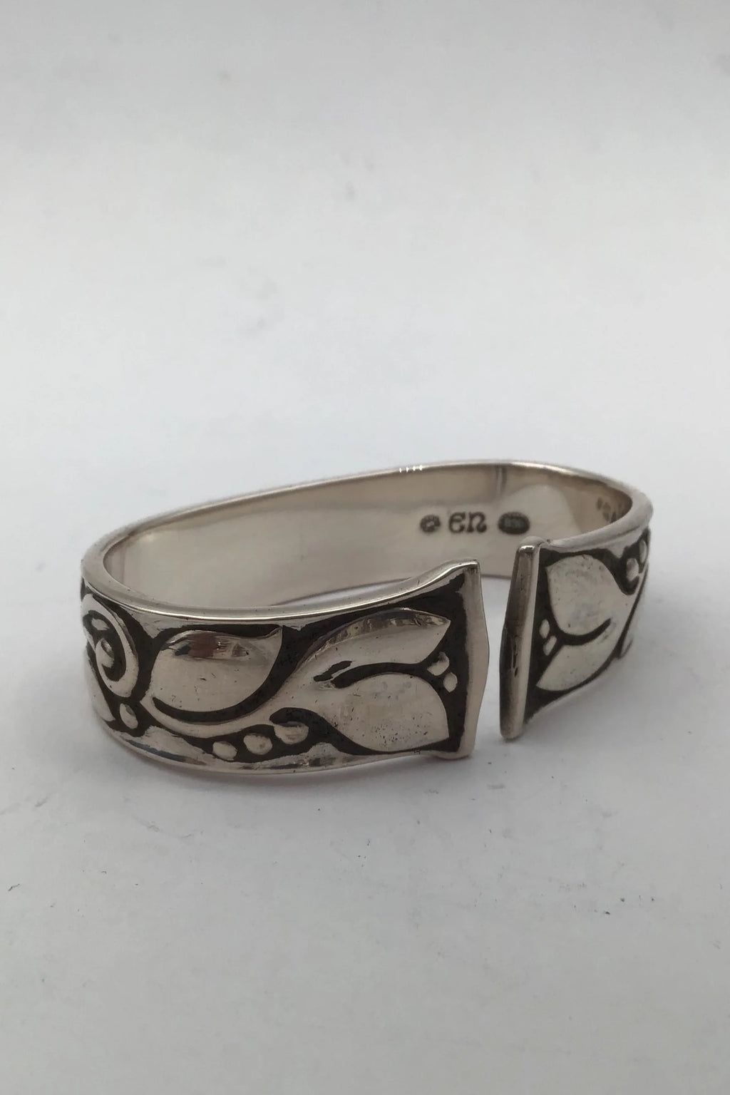 Evald Nielsen Sølv Servietring Måler 3.7 cm x 5.9 cm (1.45 inch x 2.32 inch) Bredde 1.5 cm ( 0.59 inch) Vægt 48.29 gr (1.70 oz)