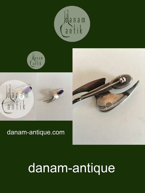 N.E. アメジスト付きスターリングシルバー・ブローチより。サイズは5.9cm、重さは11.9gで、状態は良好です。