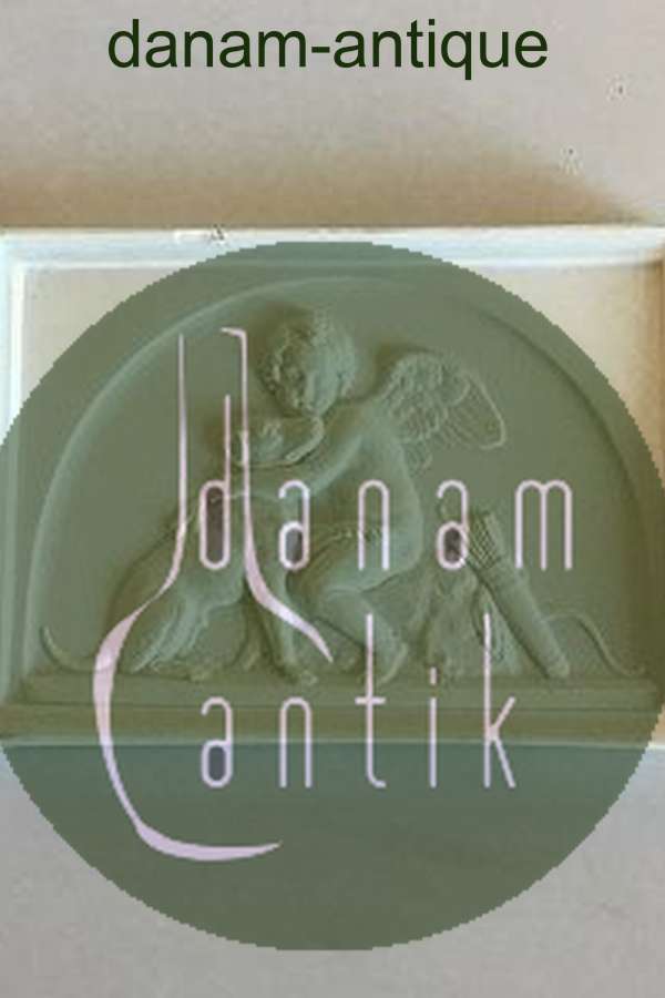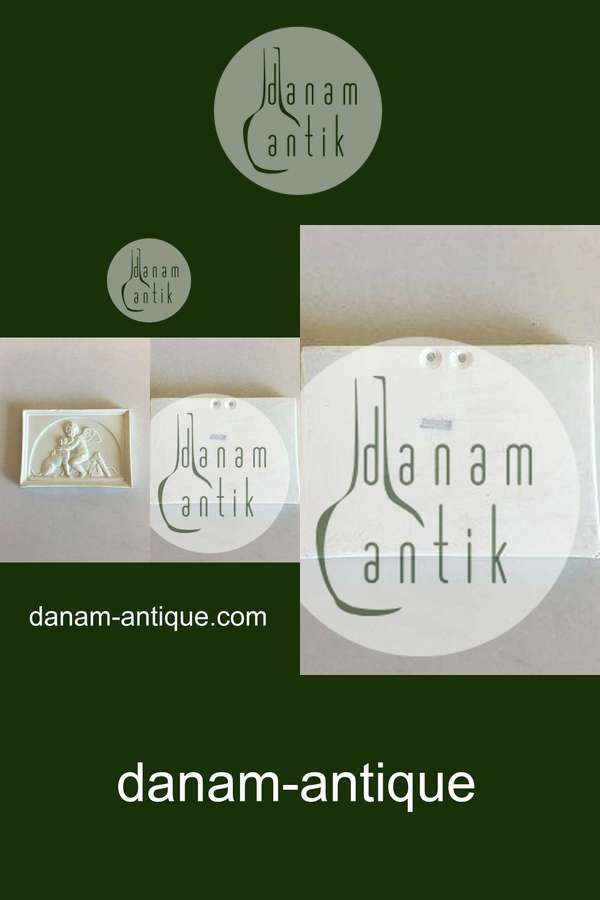 ロイヤルコペンハーゲン ビスキット キューピッドが忠実な犬を愛撫する プレート。1831年にローマで制作されたレリーフの複製。 サイズは9cm×13cm。リムに小さな欠け