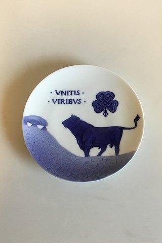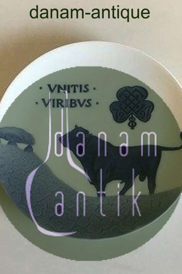 ロイヤルコペンハーゲン 1897年製 記念プレート RC-CM13サイズは18.5cmで、状態は良好です。巨大なマウンドのあるクローバー畑にいる雄牛。銘文 VNITIS VIRIBUS (by united forces), in clover leaf J.L.F. 1872-97.デザイン:アーノルド・クロッグ