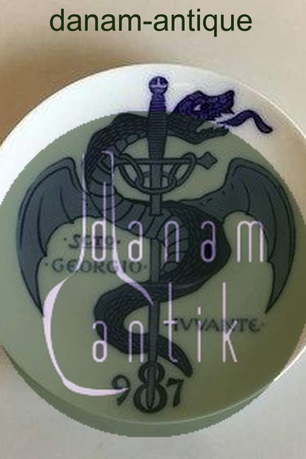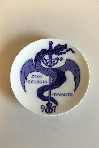 ロイヤルコペンハーゲン 1897年製 記念プレート RC-CM14サイズは18.5cmで、状態は良好です。コルクを貼り直した龍、その対の板は3つの輪で形成され、その先端はI桁のIを形成している 1897年。碑文: SCTO GEORGIO IUVANTE(聖ジョージの助けにより)。デザイン:Arnold Krog 1500ピース 7 18,5 cm