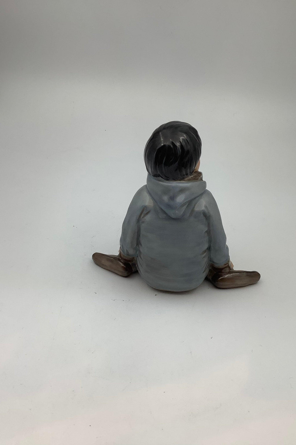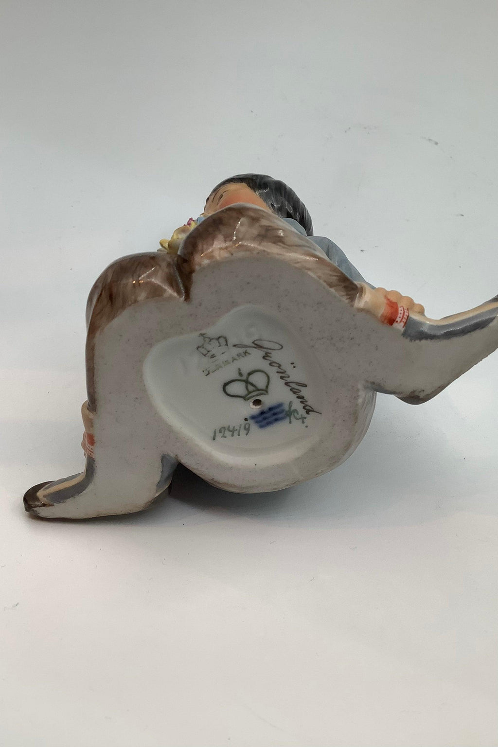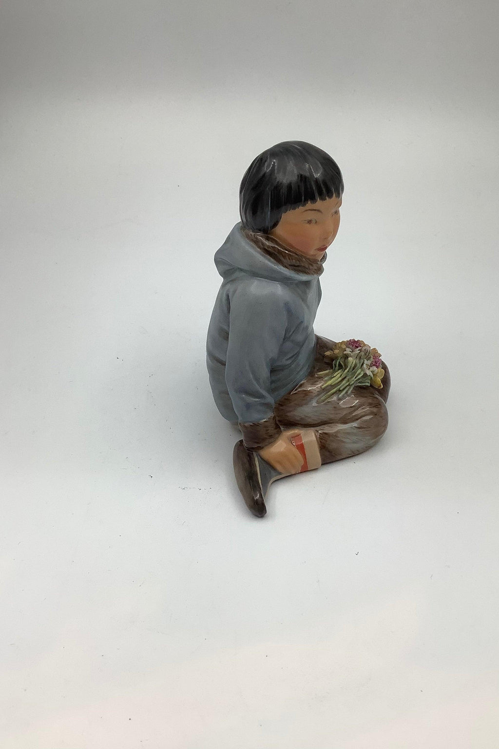 Royal Copenhagen Figur i Overglasur - Dreng med blomster fra Grønland No. 12419. Designet af Carl Martin-Hansen. Enkelte små chips på blomster. Måler 9,5 cm / 3,74 in. 1. Sortering.