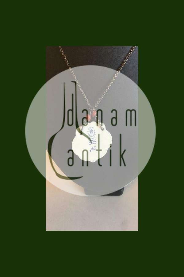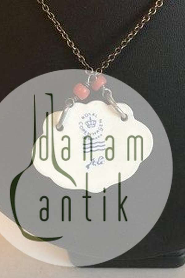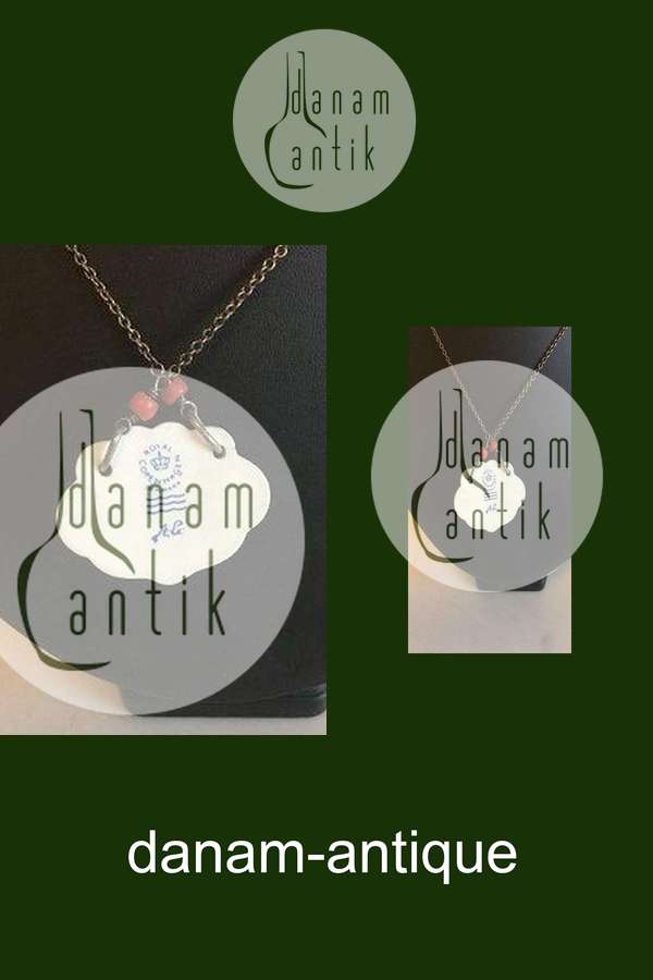 ロイヤルコペンハーゲン Arje Griegstデザインの磁器製ペンダント。Anton Michelsenによるスターリングシルバー。サイズは4,4cm×3,2cmです。チェーンは45cm