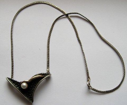 Siersbøl Sterling Silver ペンダント(パール付き)。寸法は4cmで、状態は良好です。