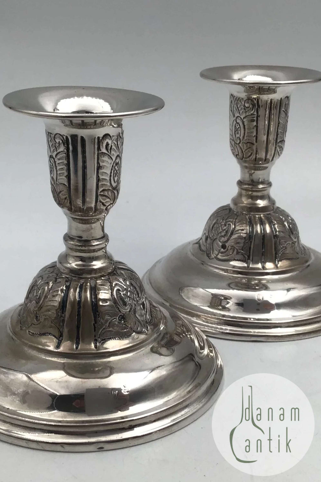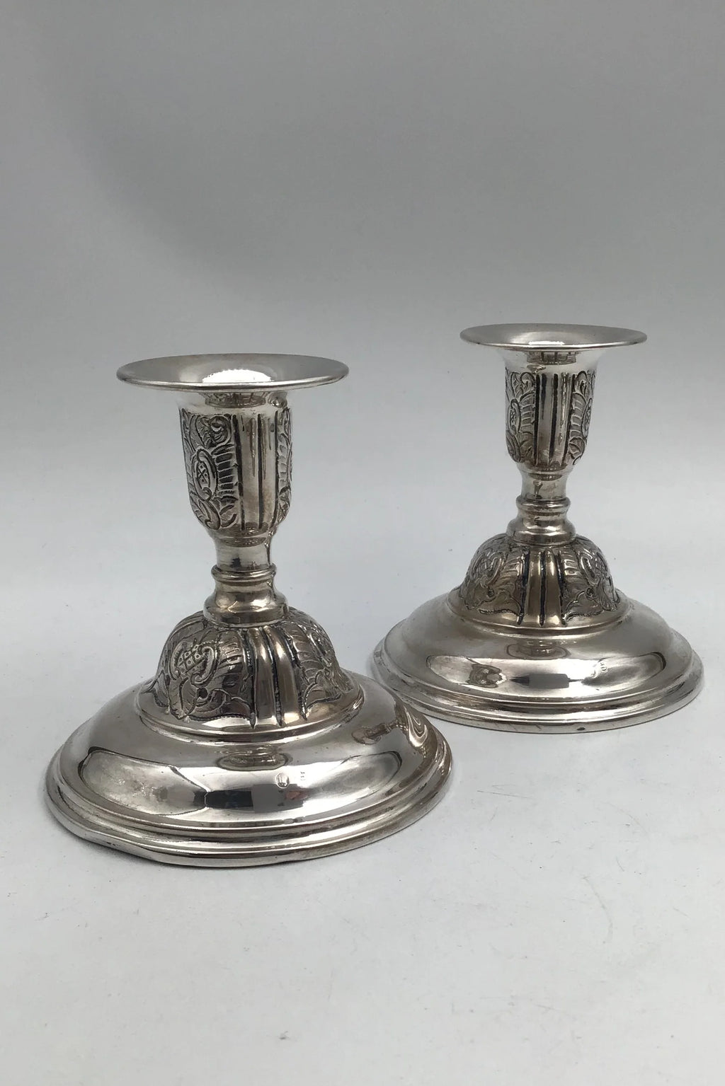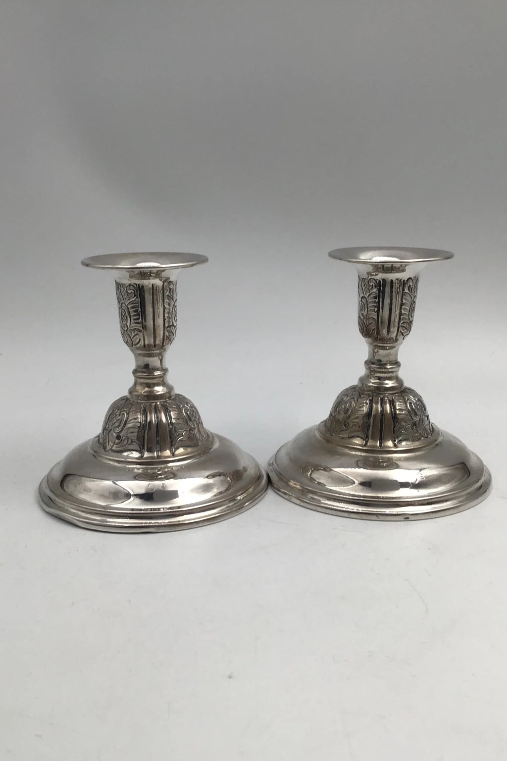 Svend Toxværd Sølv Lysestager (1958) (2) Måler Diam 9.5 cm (3.74 inch) H 9.5 cm (3.73 inch) Samlet vægt 286.7 gr (10.11 oz)(Udfyldt) (Brugsspor)
