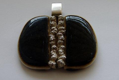 ロイヤルコペンハーゲンとミケルセンのシルバーとポーセリンのペンダント。サイズは4,3cmで、状態は良好です。重さ20,2g。
