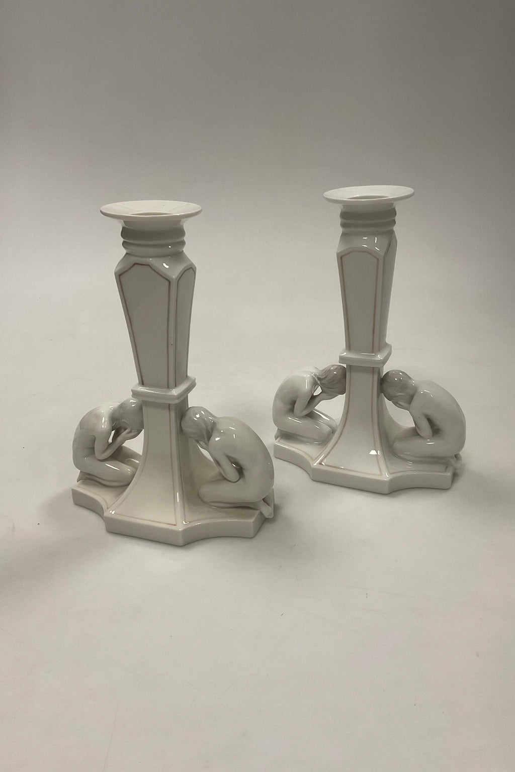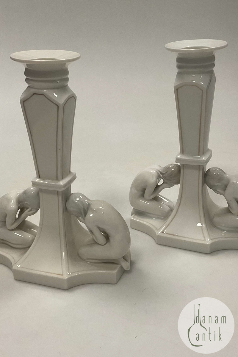 Par Bing og Grøndahl Art Nouveau Lysestager med figurer af børn No. 1557