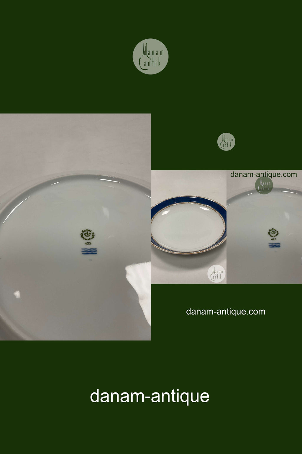 Royal Copenhagen Liselund Mørkeblå Flad Skål No 422. Måler 4,3 cm x 25,5 cm dia.(1 11/16 in. x 10 3/64 in. dia.)