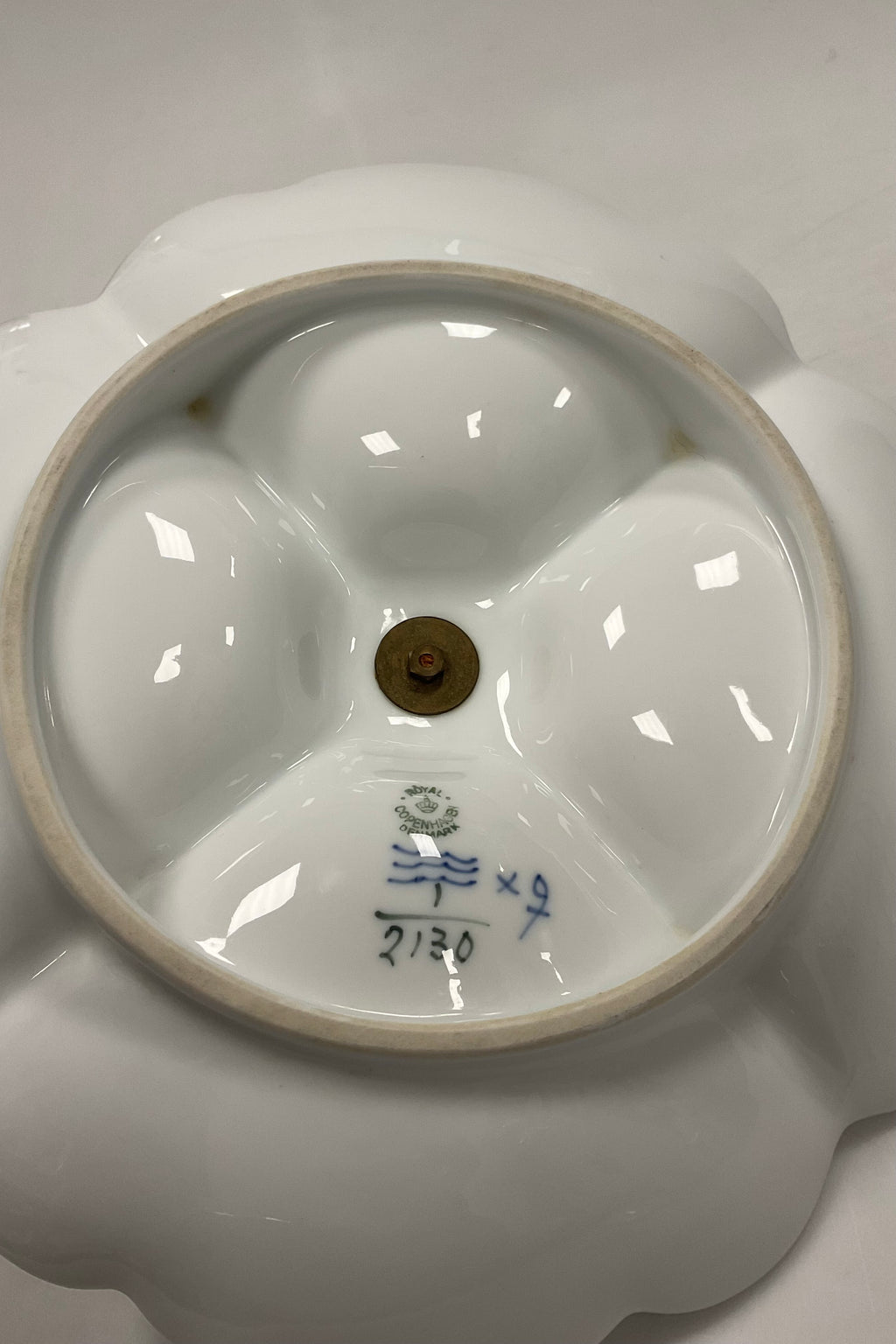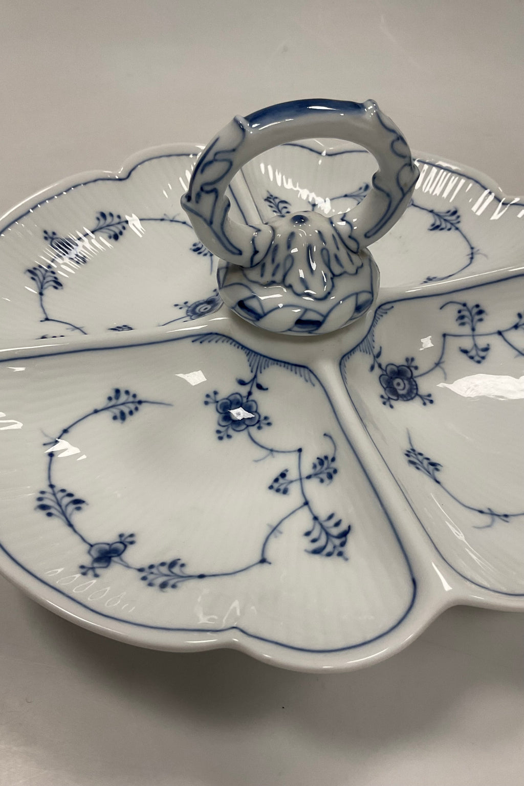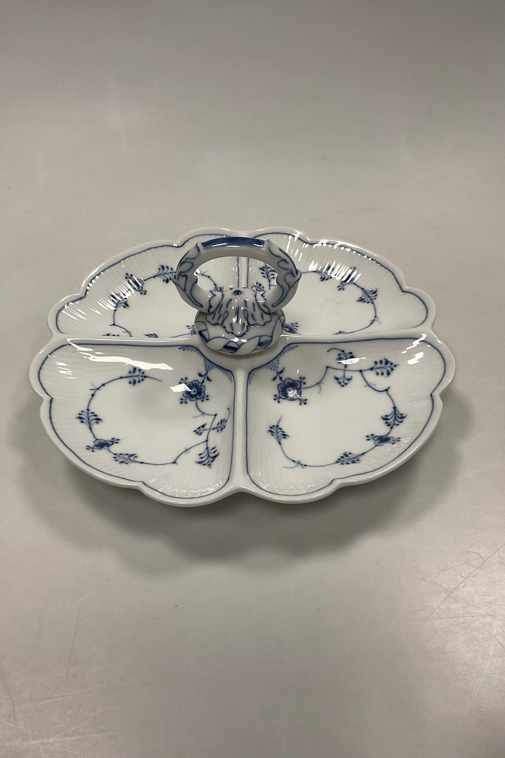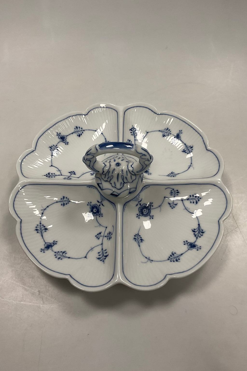 Royal Copenhagen Musselmalet Riflet Cabaretfad med Fire Skåle No. 2130. Måler 29 cm / 11,41 in.