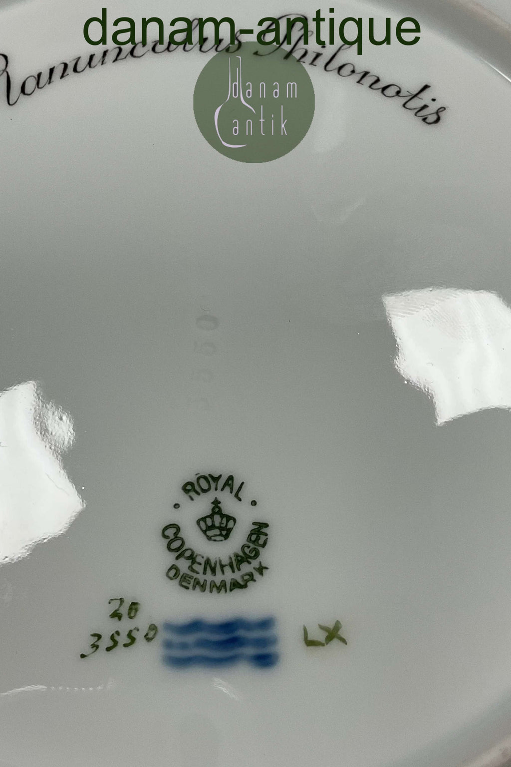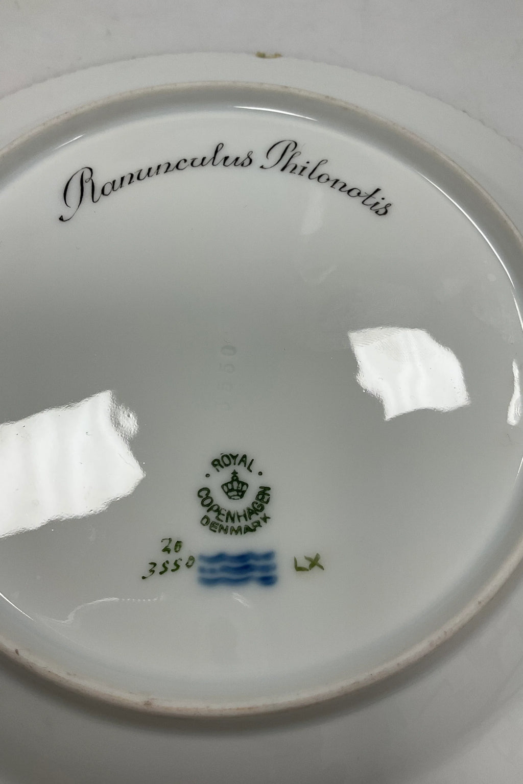 Royal Copenhagen Flora Danica Frokosttallerken No 20/3550 Måler 22 cm. 1. Sortering. Latinsk navn: Ranunculus Philonotis