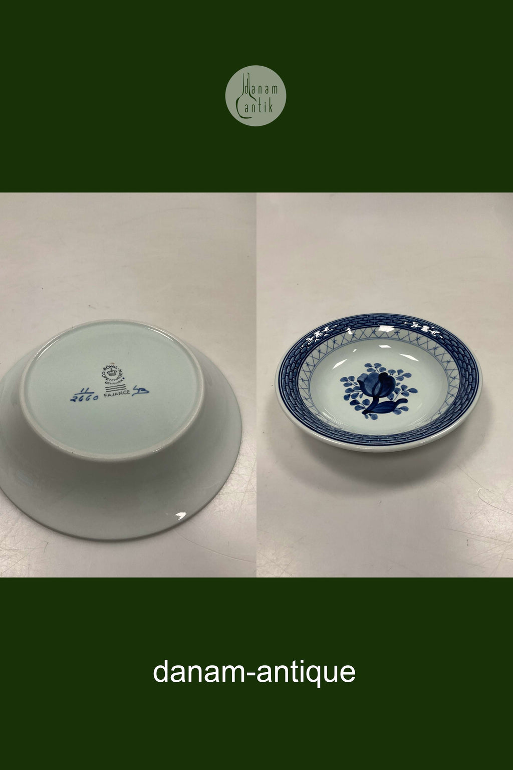 Royal Copenhagen / Aluminia Blå Tranquebar Skål No. 2660.