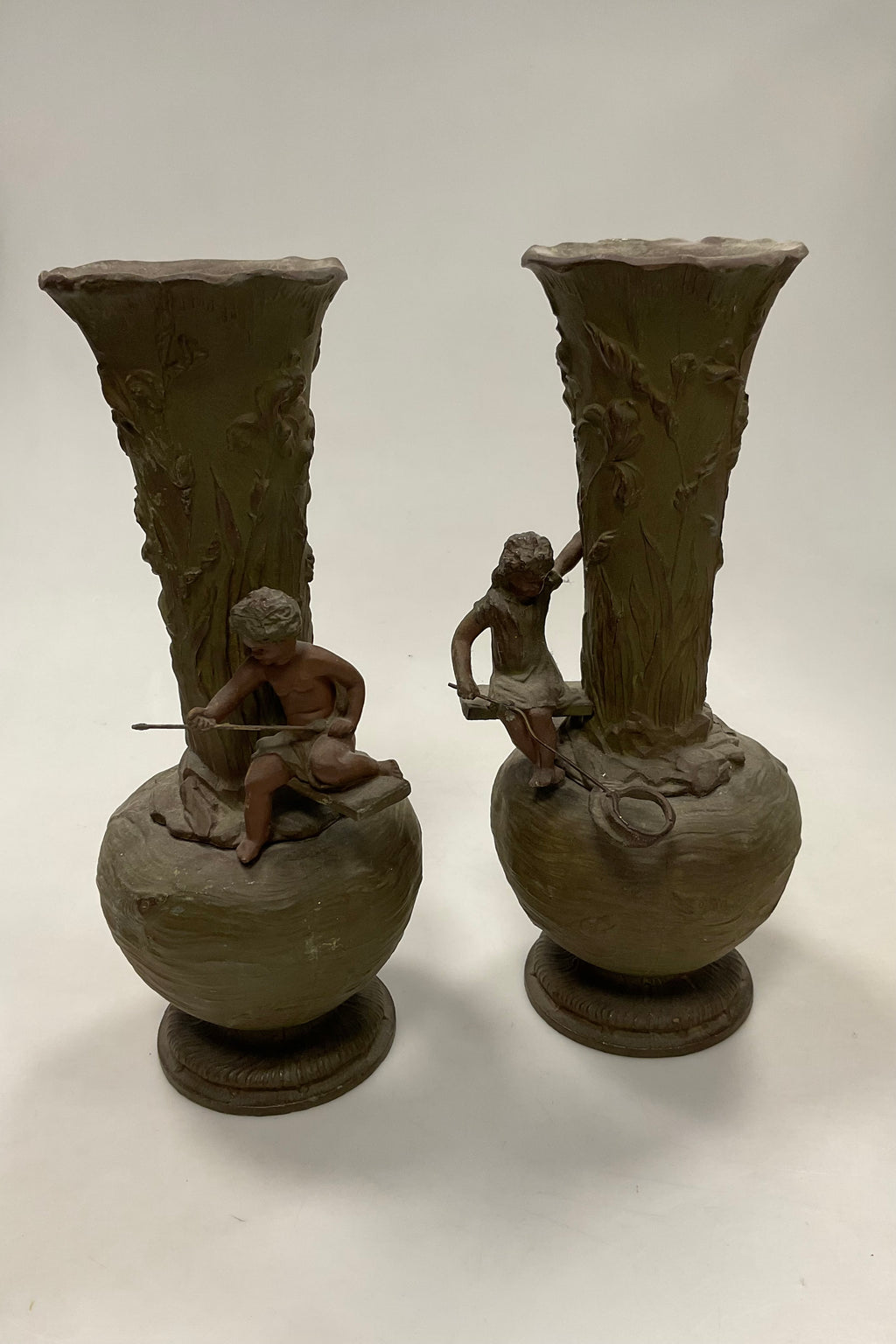 Art Nouveau Par Vaser i Metal af Ung pige og dreng