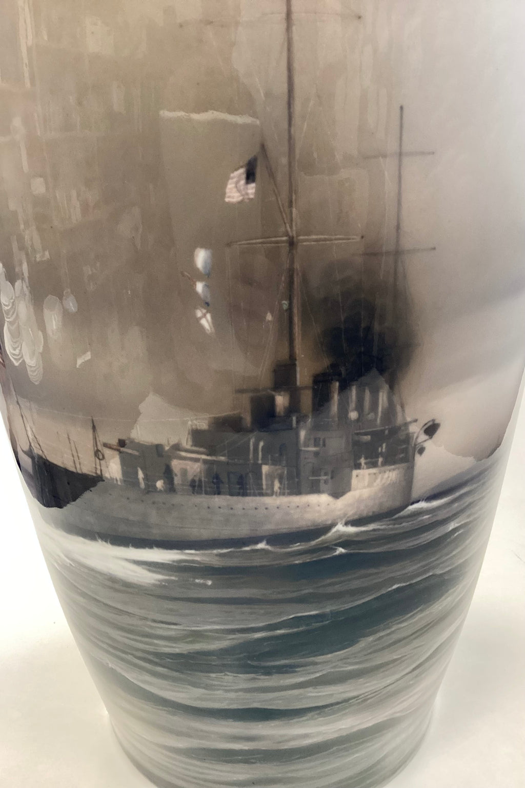 Bing og Grøndahl Harry Kluge Unika Vase med motiv a Amerikansk Krydser Memphis