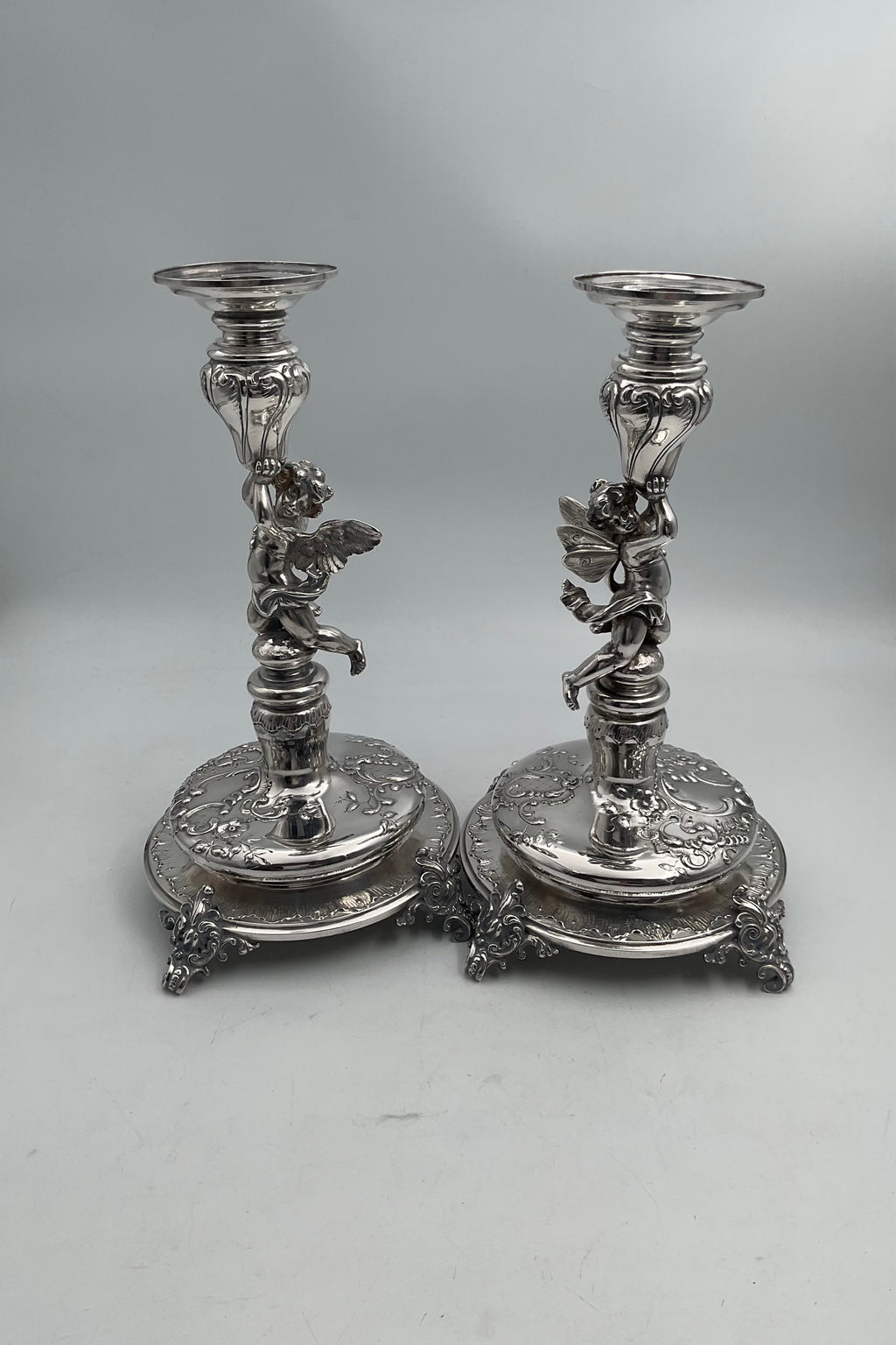 Par Tysk / Østrig / Ungarn Sølv Lysestager med puttier